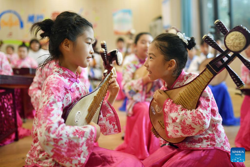 BEIJING, 16 agosto, 2025 (Xinhua) -- Niñas asisten a una reunión con temática musical, en el distrito de Chengyang de la ciudad de Qingdao, en la provincia de Shandong, en el este de China, el 16 de agosto de 2025. (Xinhua/Wang Haibin)