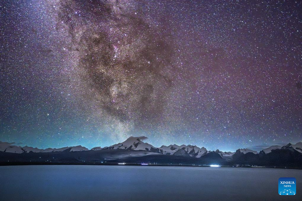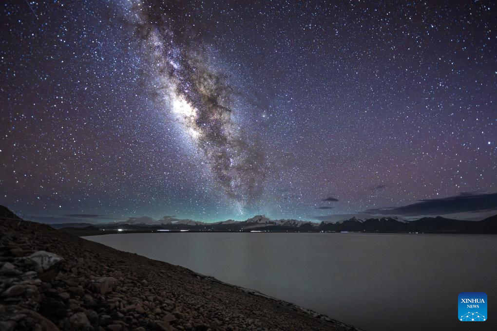 XIGAZE, 17 agosto, 2025 (Xinhua) -- Imagen del 14 de agosto de 2025 de la Vía Láctea sobre Baiku Co, en la ciudad de Xigaze, en la región autónoma de Xizang, en el suroeste de China. Baiku Co, con una superficie de agua de aproximadamente 300 kilómetros cuadrados, se encuentra a una altitud de 4.590 metros. Gracias a la excelente calidad del aire en la meseta, la Vía Láctea se puede ver claramente en el cielo estrellado a finales del verano y principios del otoño, creando un magnífico paisaje junto con el lago y las montañas nevadas. (Xinhua/Ma Lichao)