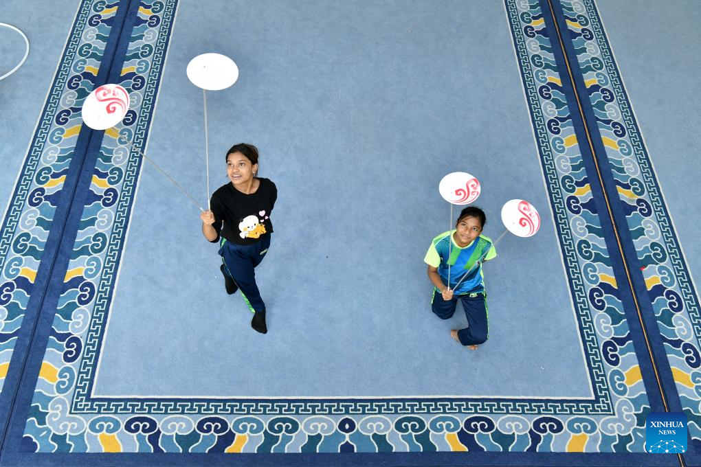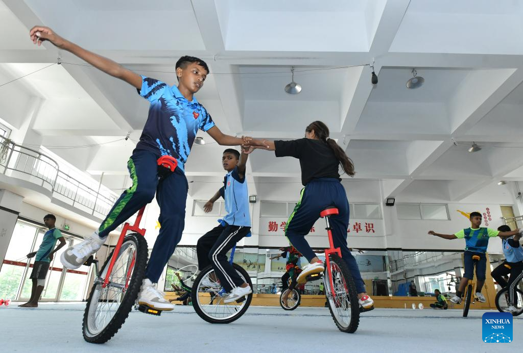 SHIJIAZHUANG, 20 agosto, 2025 (Xinhua) -- Aprendices de Bangladesh practican en la Escuela de Arte Acrobático de Wuqiao de Hebei, en el distrito de Wuqiao, provincia de Hebei, en el norte de China, el 20 de agosto de 2025. Más de 20 aprendices de Bangladesh han estado entrenando intensamente en los últimos días en la Escuela de Arte Acrobático de Wuqiao de Hebei en el distrito de Wuqiao, apodada la "cuna de la acrobacia china". (Xinhua/Mu Yu)
