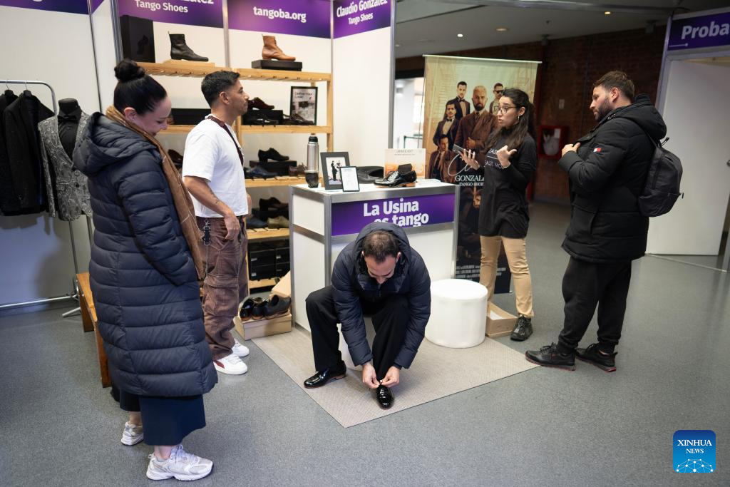 BUENOS AIRES, 21 agosto, 2025 (Xinhua) -- Imagen del 20 de agosto de 2025 de personas visitando un estand de zapatos de baile de tango de la feria instalada en el marco del Festival y Mundial de Tango 2025, en el Auditorio de la Usina del Arte, en la ciudad de Buenos Aires, capital de Argentina. La capital de Argentina, Buenos Aires, comenzó a vibrar desde el miércoles con una nueva edición del Festival y Mundial de Tango 2025, actividad que tuvo su puntapié formal con actuaciones históricas de orquestas de tango, clases y exhibiciones en distintos escenarios. (Xinhua/Martín Zabala)