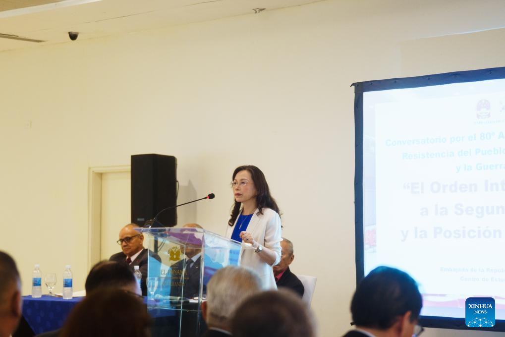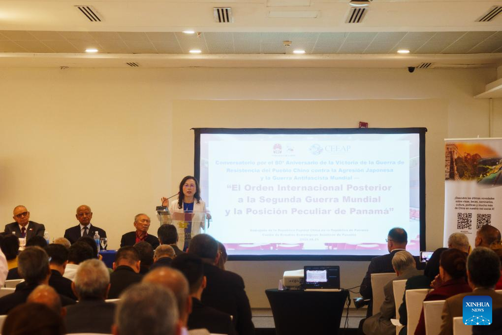 PANAMÁ, 22 ago (Xinhua) -- En conmemoración del 80° aniversario del triunfo de la Guerra de Resistencia del Pueblo Chino contra la Agresión Japonesa y la Guerra Antifascista Mundial, la Embajada de China en Panamá y el Centro de Estudios Estratégicos Asiáticos de Panamá (CEEAP) organizaron el jueves el conversatorio "El orden internacional posterior a la Segunda Guerra Mundial y la posición peculiar de Panamá", en la capital panameña.