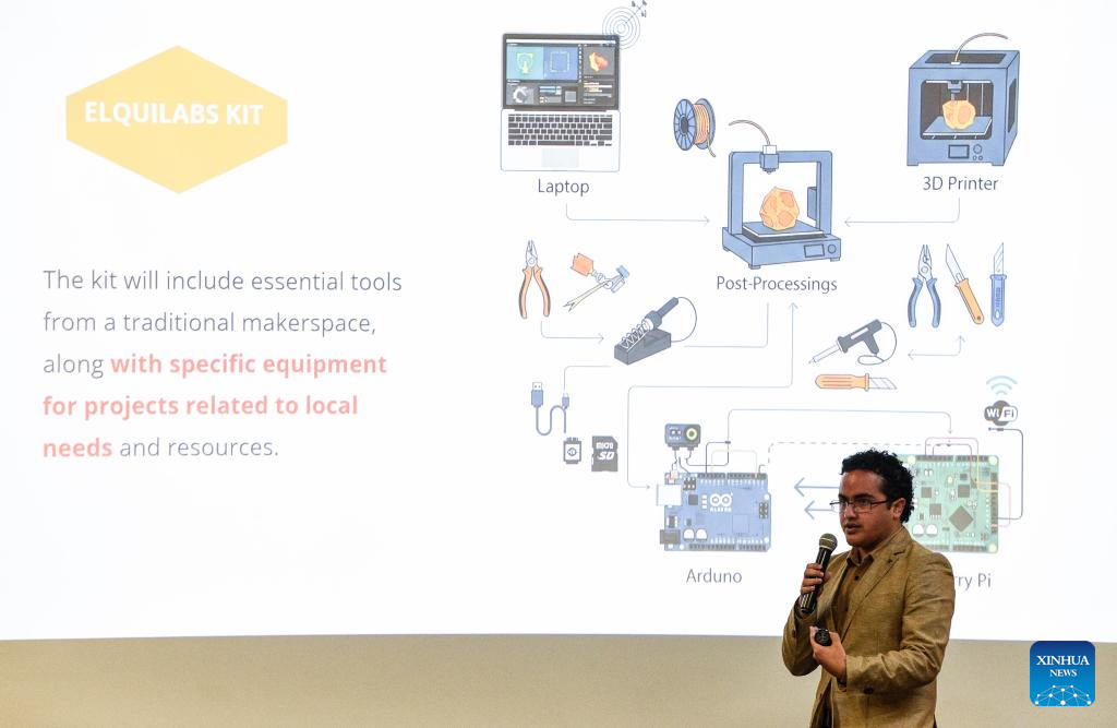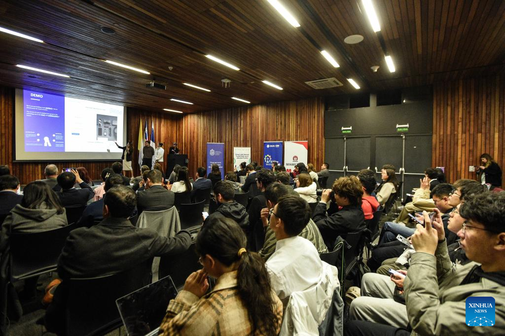 SANTIAGO, 23 agosto, 2025 (Xinhua) -- Imagen del 22 de agosto de 2025 de un estudiante participando en la final del concurso "Desafío de juventud China - LAC para aliviar pobreza 2025" llevada a cabo en la Pontificia Universidad Católica de Chile, en Santiago, capital de Chile. Estudiantes universitarios latinoamericanos y chinos se reunieron esta semana en Chile en una competencia de proyectos innovadores para enfrentar el desafío de la pobreza multidimensional en esta región, en el marco de un programa de intercambio entre jóvenes encabezado por universidades de ambas partes. (Xinhua/Jorge Villegas)