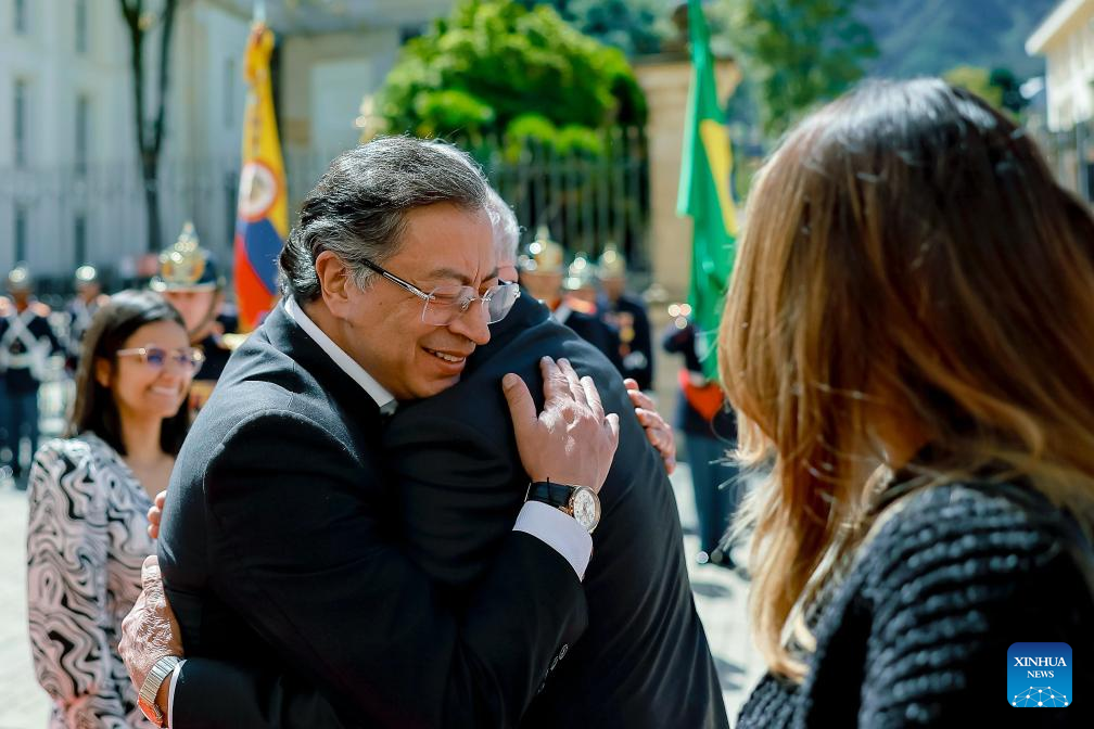 BOGOTA, 22 agosto, 2025 (Xinhua) -- Imagen proveída por el Palacio del Planalto del presidente colombiano, Gustavo Petro (i), abrazando al presidente de Brasil, Luiz Inácio Lula da Silva (d), durante la cumbre presidencial de la Organización del Tratado de Cooperación Amazónica (OTCA), en Bogotá, capital de Colombia, el 22 de agosto de 2025. Los presidentes de Brasil, Luiz Inácio Lula da Silva, y de Colombia, Gustavo Petro, anunciaron medidas conjuntas para hacer frente al narcotráfico y otras economías ilegales que amenazan la región amazónica, en el marco de la cumbre presidencial de la OTCA que se celebró el viernes en Bogotá, la capital colombiana. (Xinhua/Ricardo Stuckert/Palacio del Planalto)