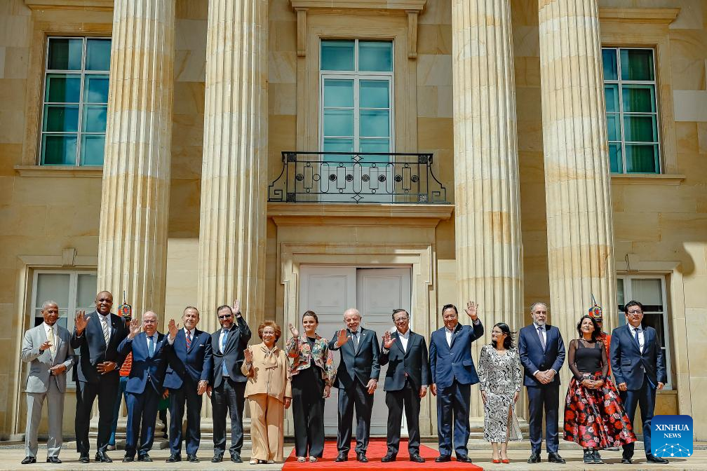 BOGOTA, 22 agosto, 2025 (Xinhua) -- Imagen proveída por el Palacio del Planalto de la toma de la fotografía grupal de la cumbre presidencial de la Organización del Tratado de Cooperación Amazónica (OTCA), en Bogotá, capital de Colombia, el 22 de agosto de 2025. Los presidentes de Brasil, Luiz Inácio Lula da Silva, y de Colombia, Gustavo Petro, anunciaron medidas conjuntas para hacer frente al narcotráfico y otras economías ilegales que amenazan la región amazónica, en el marco de la cumbre presidencial de la OTCA que se celebró el viernes en Bogotá, la capital colombiana. (Xinhua/Ricardo Stuckert/Palacio del Planalto)