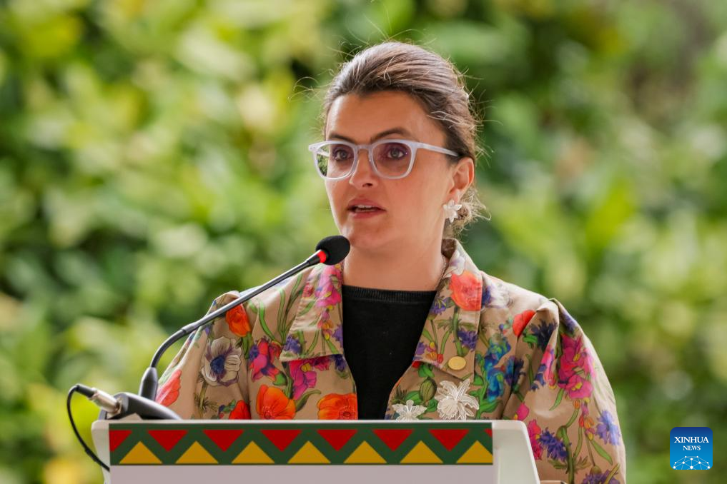BOGOTA, 22 agosto, 2025 (Xinhua) -- Imagen proveída por la Presidencia de Colombia de la vicepresidenta ecuatoriana, María José Pinto, hablando en una declaración conjunta en el marco de la cumbre presidencial de la Organización del Tratado de Cooperación Amazónica (OTCA), en Bogotá, capital de Colombia, el 22 de agosto de 2025. Los presidentes de Brasil, Luiz Inácio Lula da Silva, y de Colombia, Gustavo Petro, anunciaron medidas conjuntas para hacer frente al narcotráfico y otras economías ilegales que amenazan la región amazónica, en el marco de la cumbre presidencial de la OTCA que se celebró el viernes en Bogotá, la capital colombiana. (Xinhua/Presidencia de Colombia)