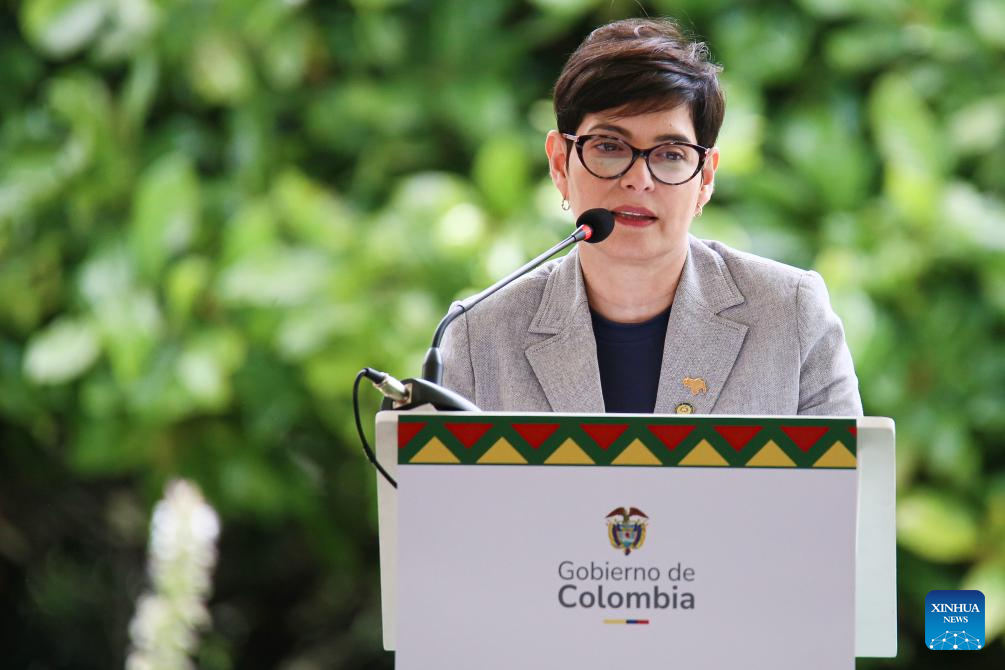 BOGOTA, 22 agosto, 2025 (Xinhua) -- Imagen cedida por COLPRENSA de la vicepresidenta sectorial de Ciencia, Tecnología, Educación y Salud venezolana, Gabriela Jiménez, hablando en una declaración conjunta en el marco de la cumbre presidencial de la Organización del Tratado de Cooperación Amazónica (OTCA), en Bogotá, capital de Colombia, el 22 de agosto de 2025. Los presidentes de Brasil, Luiz Inácio Lula da Silva, y de Colombia, Gustavo Petro, anunciaron medidas conjuntas para hacer frente al narcotráfico y otras economías ilegales que amenazan la región amazónica, en el marco de la cumbre presidencial de la OTCA que se celebró el viernes en Bogotá, la capital colombiana. (Xinhua/Lina Gasca/COLPRENSA)