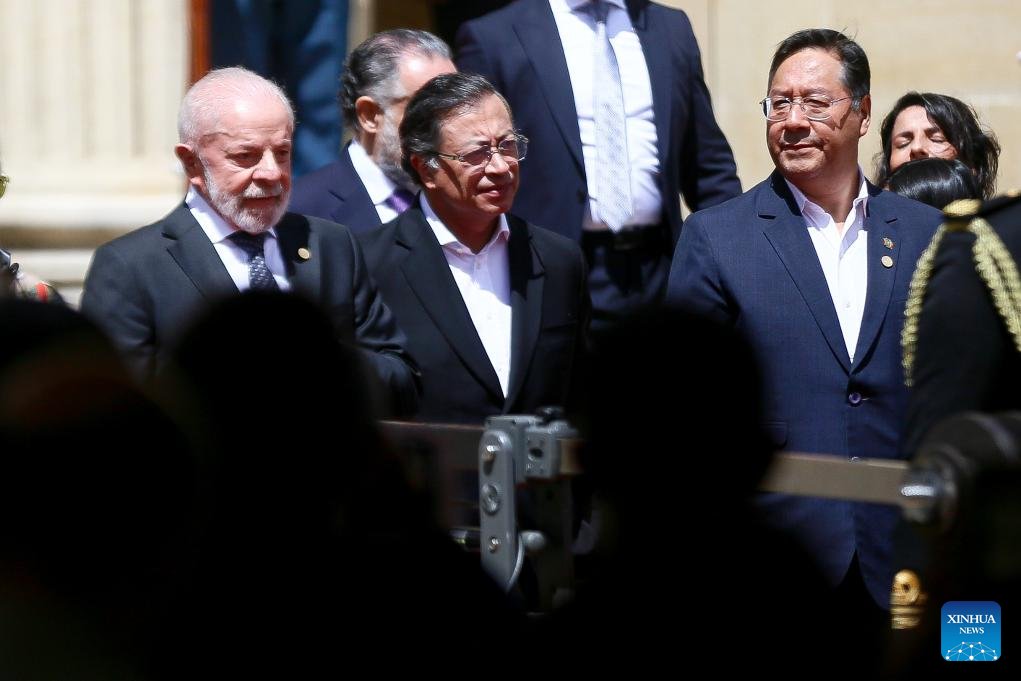 BOGOTA, 22 agosto, 2025 (Xinhua) -- Imagen cedida por COLPRENSA del presidente colombiano, Gustavo Petro (c), el presidente brasileño, Luiz Inácio Lula da Silva (i), y el presidente boliviano, Luis Arce (d), asistiendo a la cumbre presidencial de la Organización del Tratado de Cooperación Amazónica (OTCA), en Bogotá, capital de Colombia, el 22 de agosto de 2025. Los presidentes de Brasil, Luiz Inácio Lula da Silva, y de Colombia, Gustavo Petro, anunciaron medidas conjuntas para hacer frente al narcotráfico y otras economías ilegales que amenazan la región amazónica, en el marco de la cumbre presidencial de la OTCA que se celebró el viernes en Bogotá, la capital colombiana. (Xinhua/Lina Gasca/COLPRENSA)