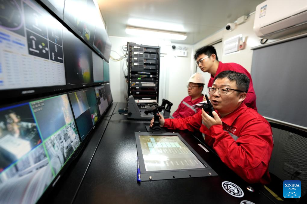Imagen del 22 de agosto de 2025 de miembros de la expedición de investigación trabajando en una central eléctrica de monitoreo del vehículo submarino chino operado por control remoto (ROV, por sus siglas en inglés) Haiqin, con capacidad de descender hasta 6.000 metros, a bordo del buque Zhong Shan Da Xue, en el Mar Meridional de China. El sistema ROV eléctrico de aguas profundas, con capacidad de descender hasta 6.000 metros, completó con éxito un viaje a aguas profundas en el Mar Meridional de China, informaron científicos a la Agencia de Noticias Xinhua. El sistema ROV eléctrico de aguas profundas nombrado Haiqin, que fue diseñado y construido por la Universidad Jiao Tong de Shanghai, alcanzó una profundidad de 4.140 metros, como parte de su reciente prueba en el mar, llevada a cabo durante la madrugada del sábado. Equipado con cámaras de alta definición, brazos robóticos, sistemas de sonar y sensores, el vehículo demostró capacidades que incluyen control automático de rumbo y navegación estacionaria precisa. (Xinhua/Zhang Jiansong)