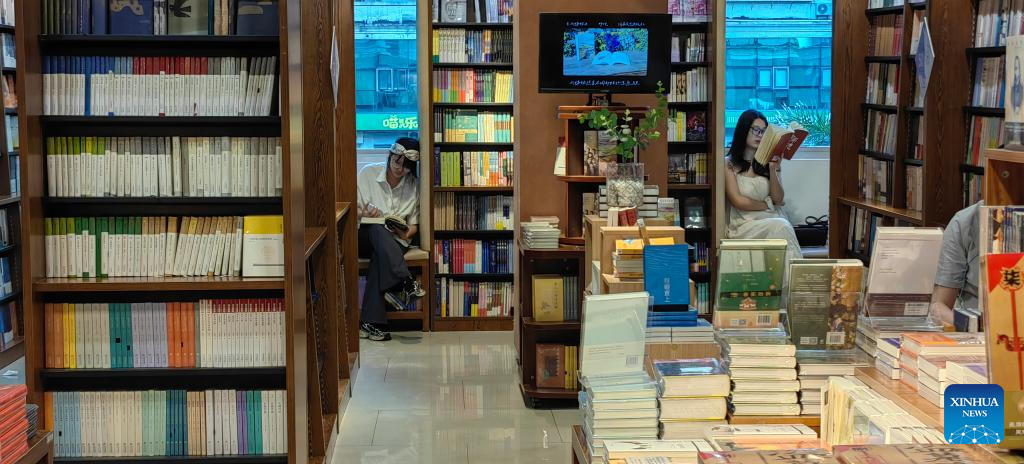 XIAMEN, 24 agosto, 2025 (Xinhua) -- Imagen del 23 de agosto de 2025 de personas leyendo libros en una librería, en Xiamen, en la provincia de Fujian, en el sureste de China. Desde una zona escénica con temática de la cultura minnan, hasta una calle centenaria, los nuevos escenarios emergentes de consumo en la ciudad de Xiamen han impulsado la demanda interna de consumo cultural y turístico en los últimos años. (Xinhua/Yu Lan)