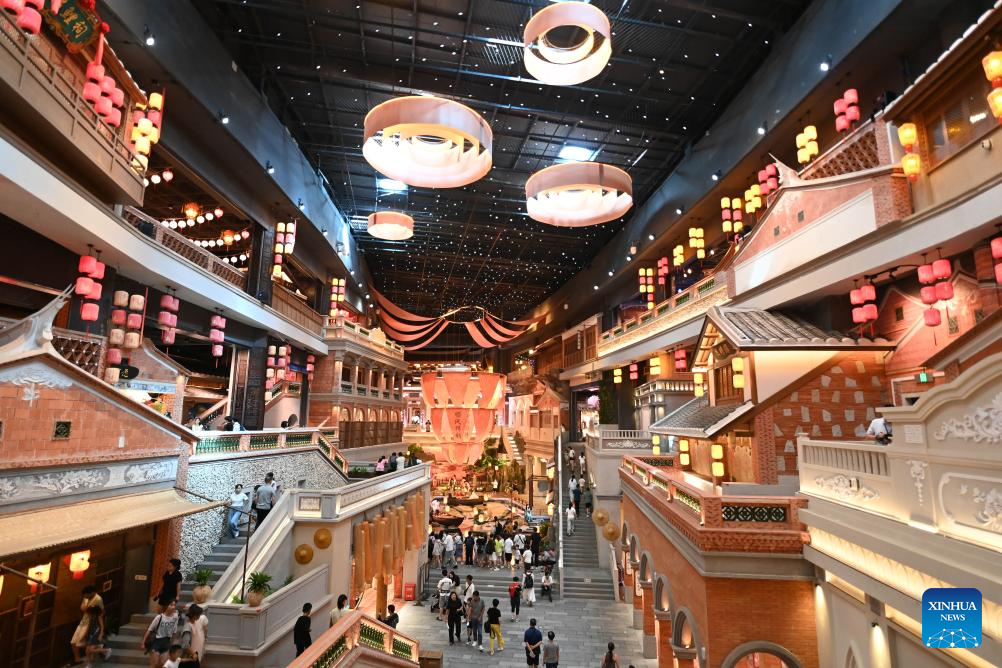 XIAMEN, 24 agosto, 2025 (Xinhua) -- Imagen del 22 de agosto de 2025 de turistas visitando un área escénica con temática de la cultura minnan, en Xiamen, en la provincia de Fujian, en el sureste de China. Desde una zona escénica con temática de la cultura minnan, hasta una calle centenaria, los nuevos escenarios emergentes de consumo en la ciudad de Xiamen han impulsado la demanda interna de consumo cultural y turístico en los últimos años. (Xinhua/Xiao Xiao)