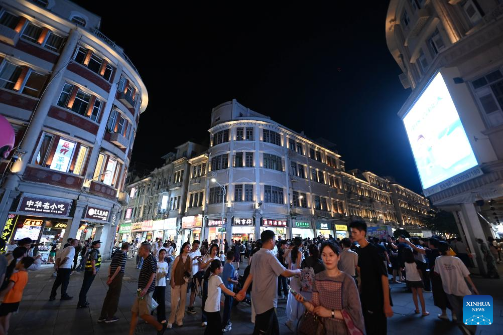 XIAMEN, 24 agosto, 2025 (Xinhua) -- Imagen del 22 de agosto de 2025 de turistas caminando en una calle peatonal, en Xiamen, en la provincia de Fujian, en el sureste de China. Desde una zona escénica con temática de la cultura minnan, hasta una calle centenaria, los nuevos escenarios emergentes de consumo en la ciudad de Xiamen han impulsado la demanda interna de consumo cultural y turístico en los últimos años. (Xinhua/Xiao Xiao)