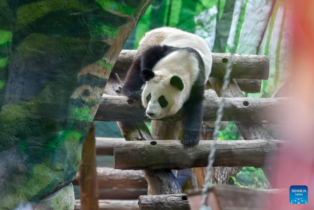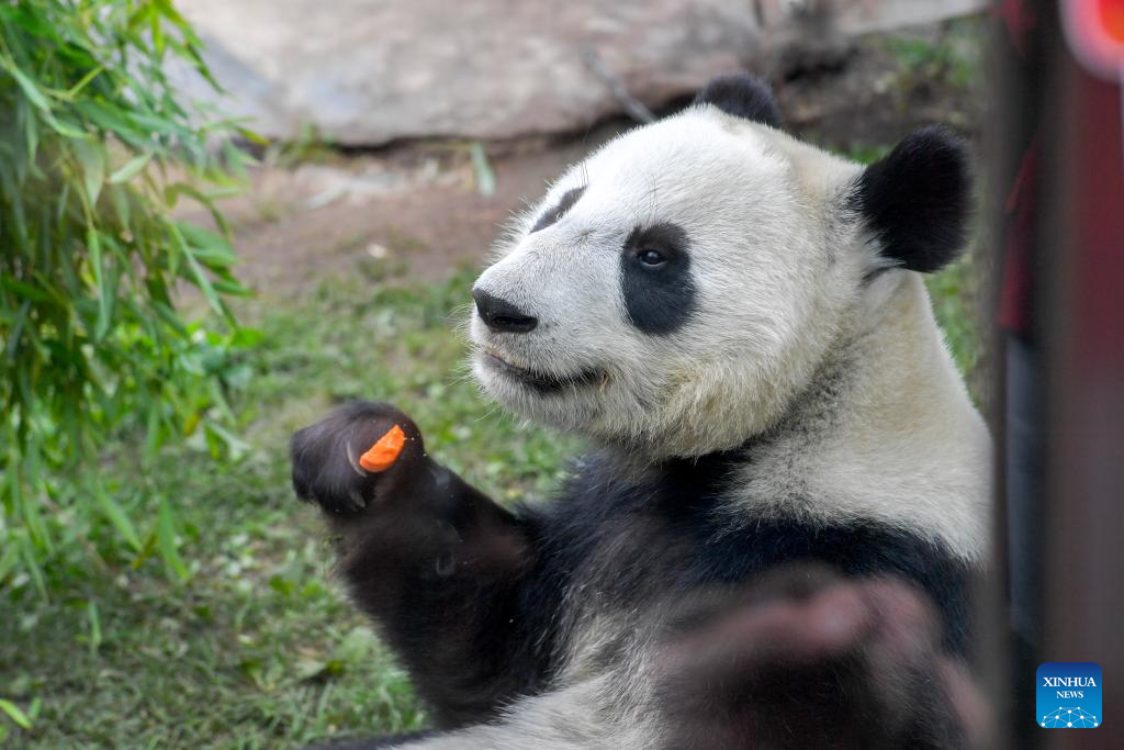 MOSCU, 24 agosto, 2025 (Xinhua) -- La panda gigante Katyusha es vista en el Zoológico de Moscú, en Moscú, Rusia, el 24 de agosto de 2025. Katyusha, la primera cría de panda gigante nacida en el Zoológico de Moscú, celebró su segundo cumpleaños el domingo. (Xinhua/Alexander Zemlianichenko Jr)