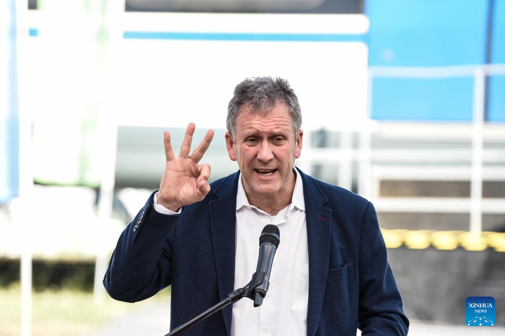 Imagen del 25 de agosto de 2025 del presidente de Empresa de Ferrocarriles del Estado (EFE) de Chile, Eric Martin, pronunciando un discurso durante la ceremonia de firma de un contrato ferroviario, en Santiago, capital de Chile. El contrato más grande en la historia de la EFE de Chile se firmó el lunes con el consorcio Constructora Gran Andes SpA, integrado por China Railway Construction Corporation y sus filiales, para ejecutar las obras civiles y ferroviarias del futuro trayecto de tren Santiago-Batuco, que conectará la zona norte de la capital chilena con trenes eléctricos. (Xinhua/Jorge Villegas)