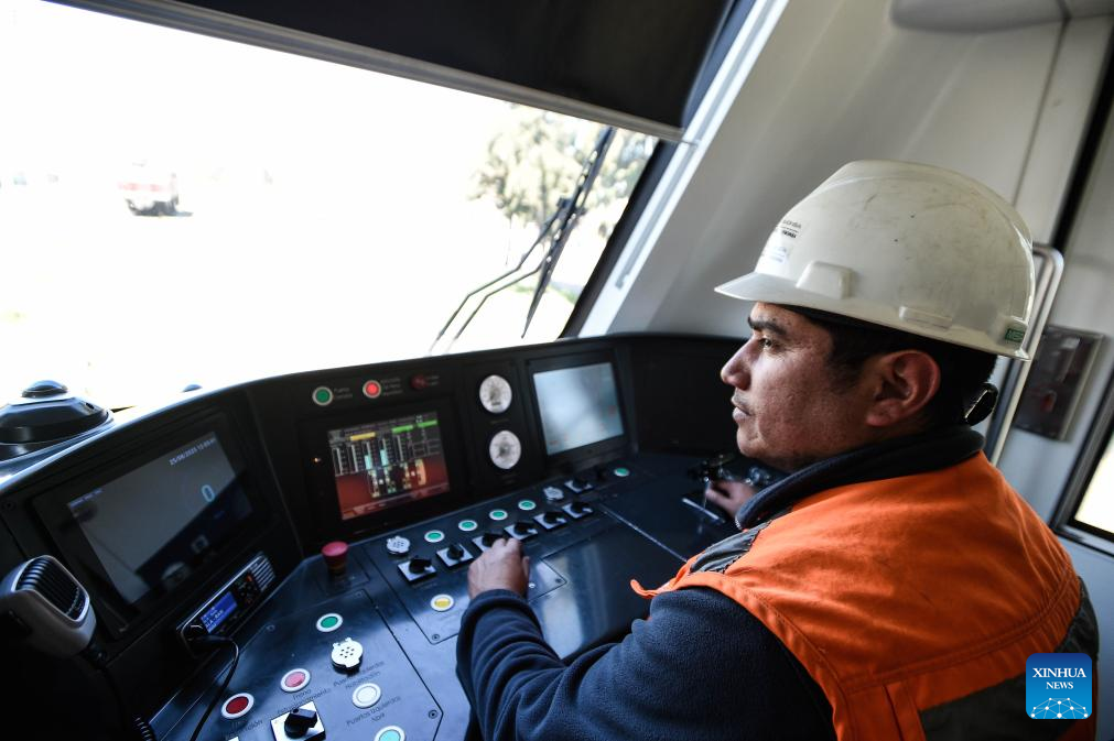 Imagen del 25 de agosto de 2025 de un trabajador de la Empresa de Ferrocarriles del Estado (EFE) de Chile laborando en un tren durante la ceremonia de firma de un contrato ferroviario, en Santiago, capital de Chile. El contrato más grande en la historia de la EFE de Chile se firmó el lunes con el consorcio Constructora Gran Andes SpA, integrado por China Railway Construction Corporation y sus filiales, para ejecutar las obras civiles y ferroviarias del futuro trayecto de tren Santiago-Batuco, que conectará la zona norte de la capital chilena con trenes eléctricos. (Xinhua/Jorge Villegas)