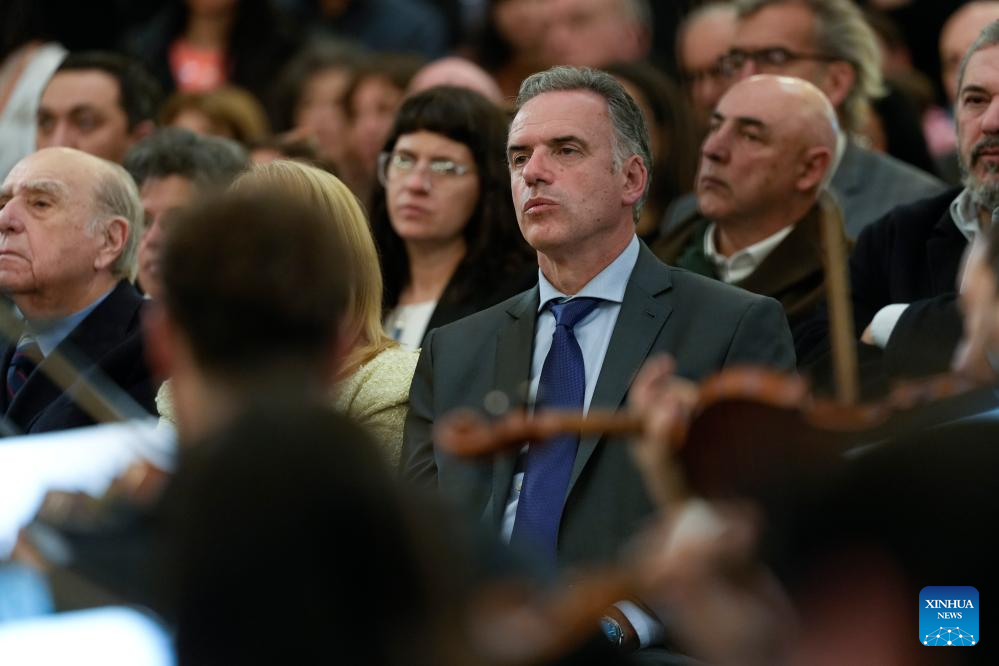 Imagen del 25 de agosto de 2025 del presidente uruguayo, Yamandú Orsi (c), observando una presentación de la Orquesta Sinfónica del Sodre y su Coro Nacional durante las celebraciones por el 100° aniversario del Palacio Legislativo, en Montevideo, capital de Uruguay. El Palacio Legislativo de Montevideo, sede del Parlamento uruguayo y considerado "símbolo de la democracia uruguaya", conmemoró el lunes su 100° aniversario, que coincide con la fecha de los doscientos años de la Declaratoria de la Independencia. (Xinhua/Nicolás Celaya)