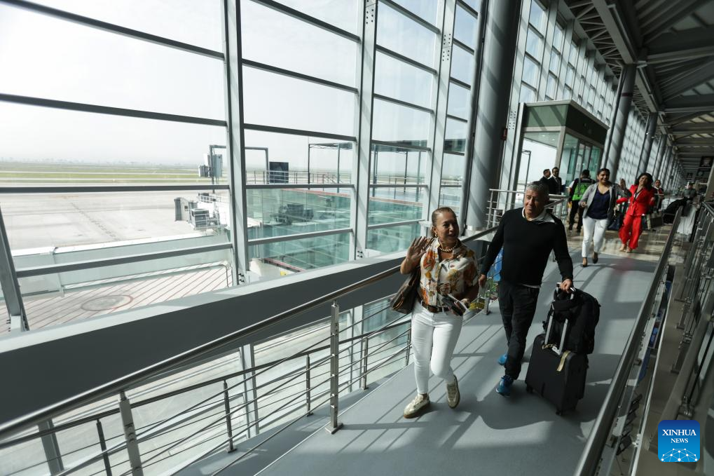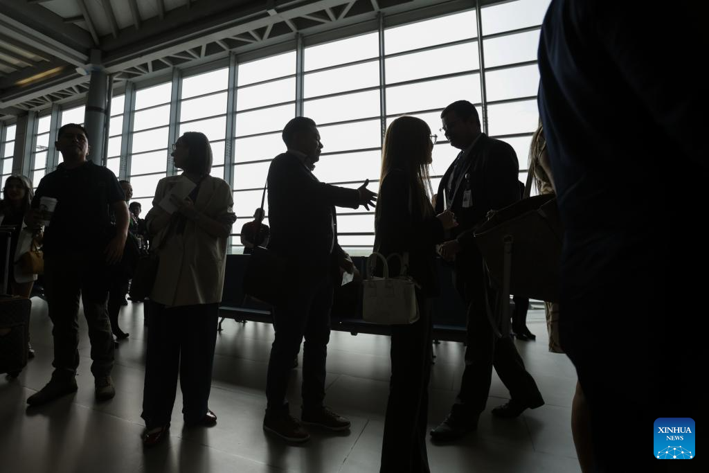 ZUMPANGO, 25 agosto, 2025 (Xinhua) -- Personas esperan para abordar el primer vuelo de la aeronave EMBRAER E-195 de la Aerolínea del Estado Mexicano "Mexicana", en el Aeropuerto Internacional Felipe Angeles, en Zumpango, México, el 25 de agosto de 2025. (Xinhua/Francisco Cañedo)