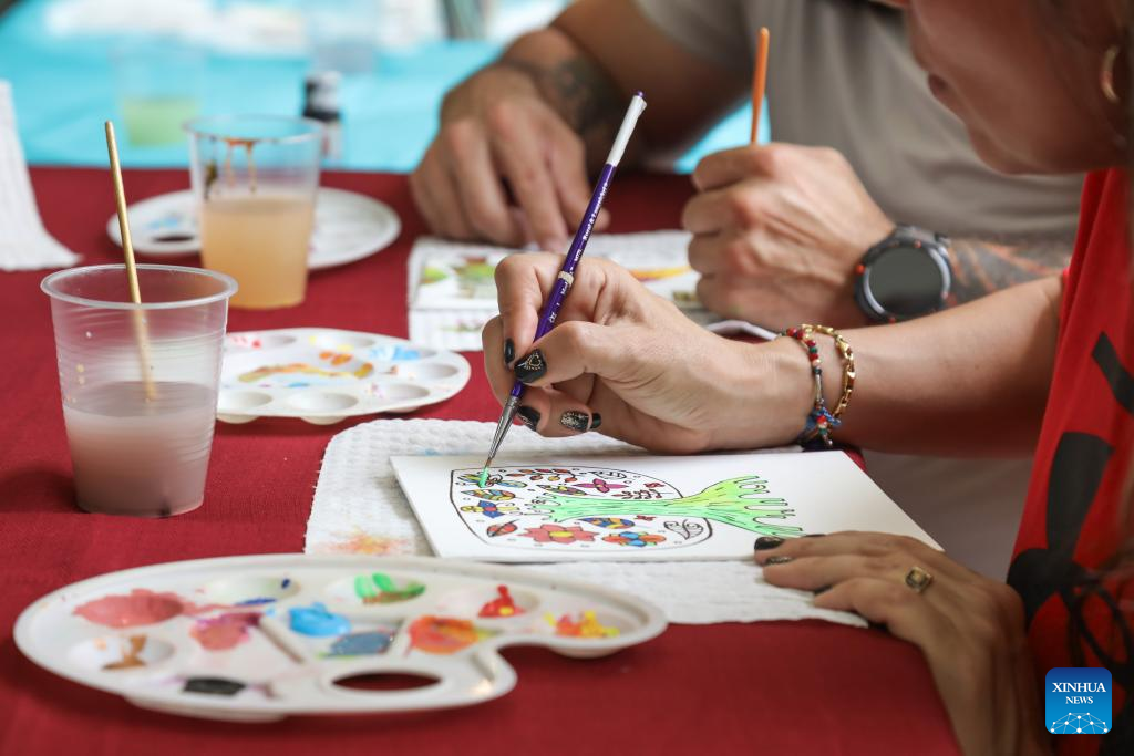 Imagen del 23 de agosto de 2025 de turistas pintando piezas artísticas en el Centro de Desarrollo Artesanal Interactivo (CEDART), en el departamento de San Salvador, capital de El Salvador. En el centro histórico de San Salvador, la capital salvadoreña, en las inmediaciones de la emblemática plaza Morazán, se levanta un edificio de tres niveles que busca tender un puente entre tradición y modernidad: el CEDART. (Xinhua/Alexander Peña)