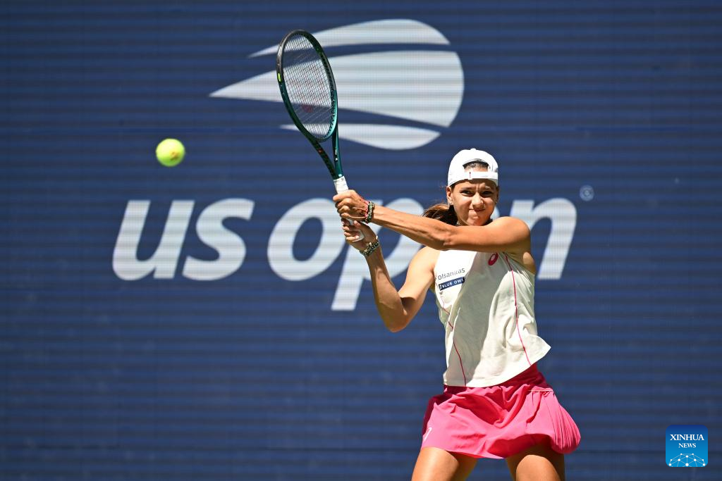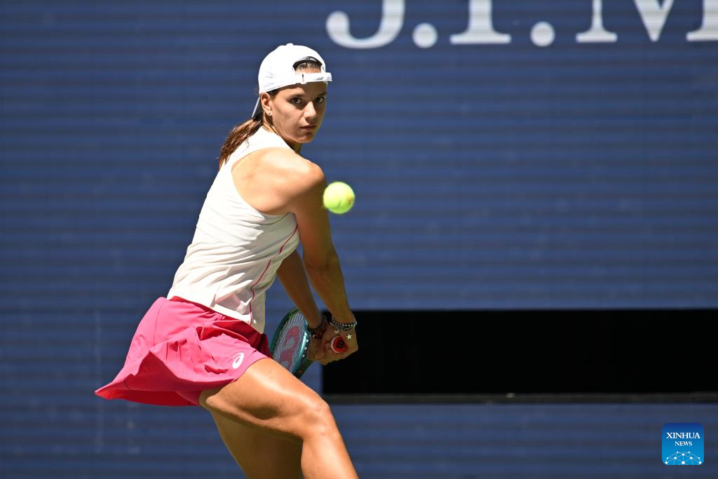 NUEVA YORK, 27 agosto, 2025 (Xinhua) -- Imagen del 26 de agosto de 2025 de Emiliana Arango, de Colombia, devolviendo la pelota durante el partido de la primera ronda de individuales femeninos ante Iga Swiatek, de Polonia, en el campeonato de tenis US Open 2025, en Nueva York, Estados Unidos. (Xinhua/Li Rui)