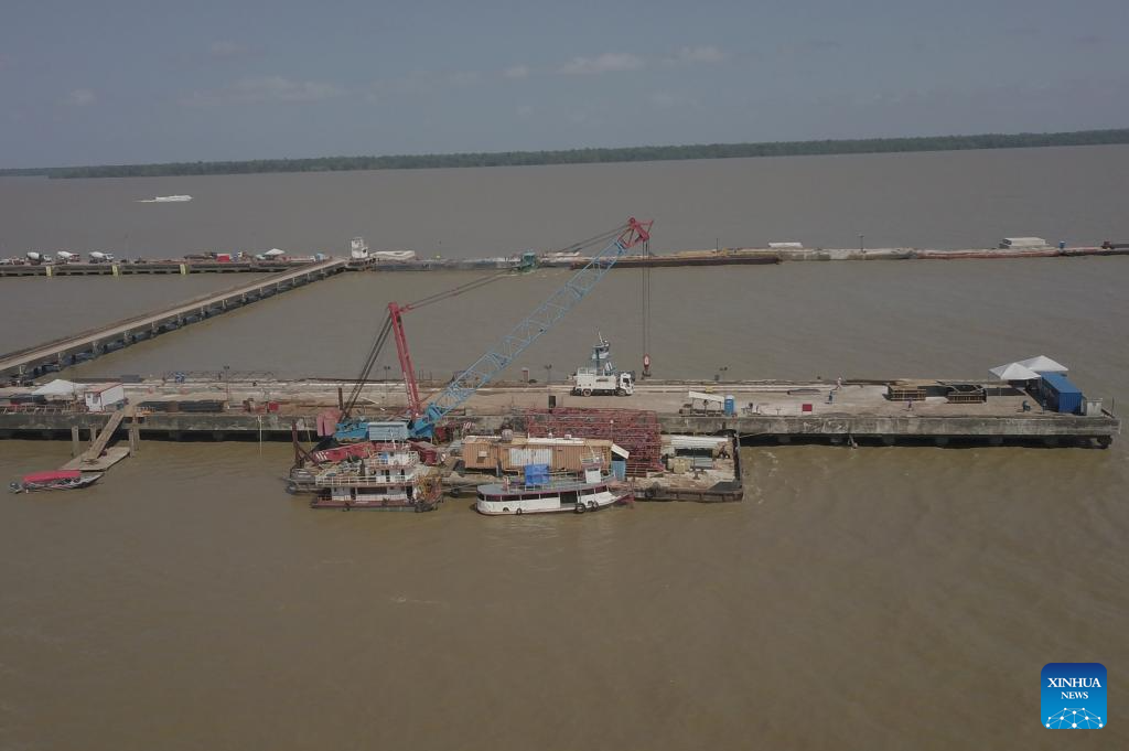 BELEM, 27 agosto, 2025 (Xinhua) -- Vista aérea tomada por un dron el 27 de agosto de 2025 del sitio de construcción de un nuevo puerto para el atraque de buques que servirán como hoteles durante la Conferencia de las Partes (COP30) de la Convención Marco de las Naciones Unidas sobre Cambio Climático, en Belém, estado de Pará, Brasil. (Xinhua/Lucio Tavora)