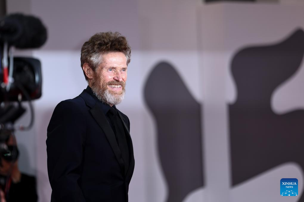 VENECIA, 29 agosto, 2025 (Xinhua) -- Imagen del 28 de agosto de 2025 de Willem Dafoe llegando a la alfombra roja del estreno de "Bugonia" durante el 82° Festival de Cine de Venecia, en Venecia, Italia. (Xinhua/Li Jing)