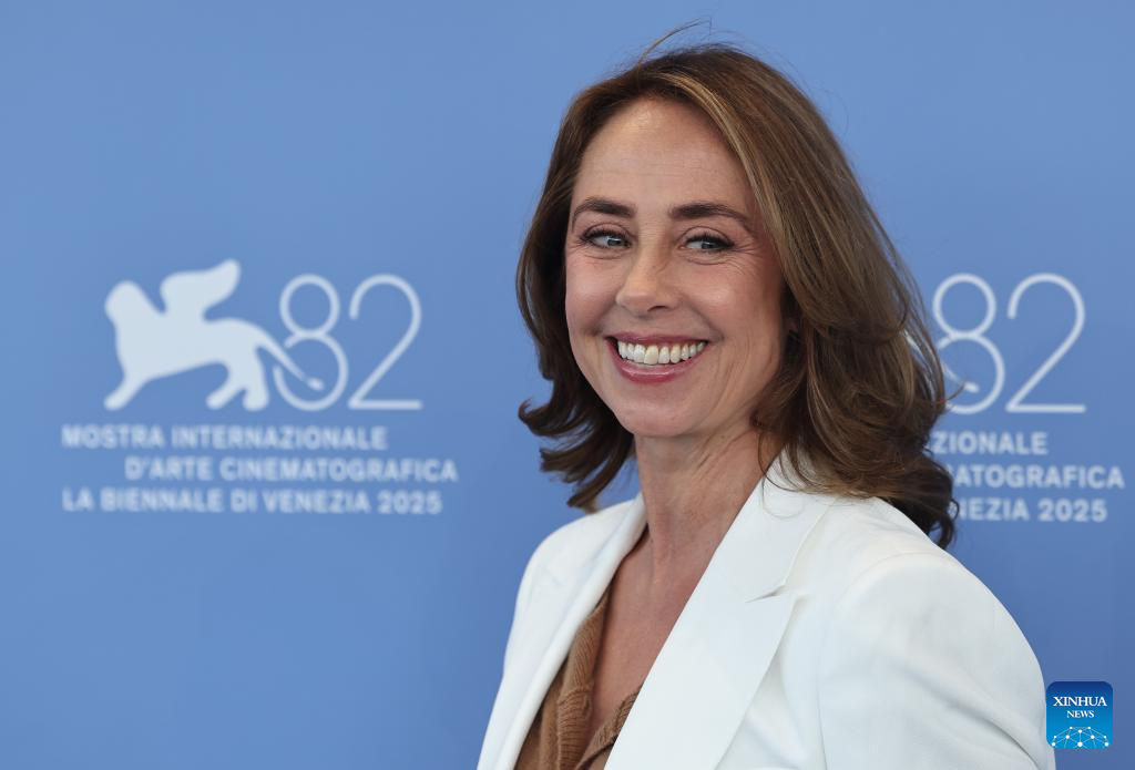 VENECIA, 30 agosto, 2025 (Xinhua) -- Sofie Grabol, de la película "The Last Viking", posa para la sesión fotográfica durante el 82° Festival de Cine de Venecia, en Venecia, Italia, el 30 de agosto de 2025. (Xinhua/Li Jing)