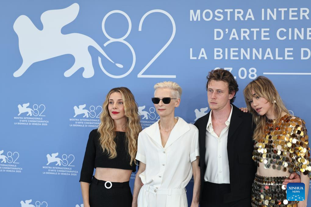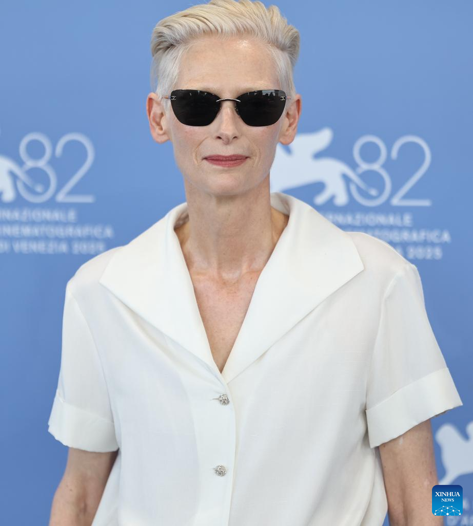 VENECIA, 30 agosto, 2025 (Xinhua) -- Tilda Swinton, de la película "Broken English", posa para la sesión fotográfica durante el 82° Festival de Cine de Venecia, en Venecia, Italia, el 30 de agosto de 2025. (Xinhua/Li Jing)