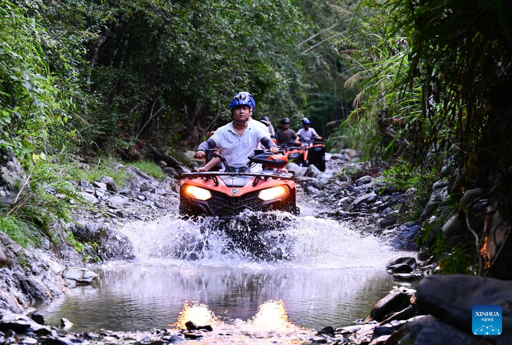 HEFEI, 30 agosto, 2025 (Xinhua) -- Imagen del 27 de agosto de 2025 de visitantes disfrutando de actividades acuáticas en un punto escénico, en el distrito de Xiuning, en la ciudad de Huangshan, en la provincia de Anhui, en el este de China. Durante las vacaciones de verano, las ciudades de la provincia de Anhui han aprovechado sus abundantes recursos montañosos e hídricos para desarrollar una "economía de refrescamiento", atrayendo a un gran número de visitantes. (Xinhua/Zhou Mu)