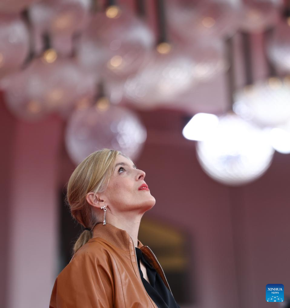 VENECIA, 30 agosto, 2025 (Xinhua) -- Imagen del 29 de agosto de 2025 de la directora Valerie Donzelli de la película "A Pied d'Oeuvre" llegando a la alfombra roja del estreno durante el 82° Festival de Cine de Venecia, en Venecia, Italia. (Xinhua/Li Jing)