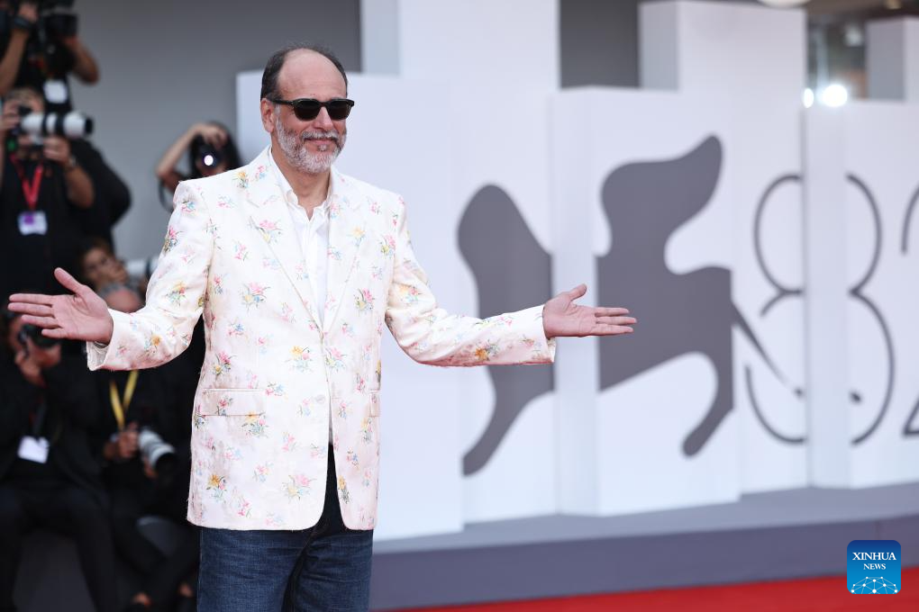 VENECIA, 30 agosto, 2025 (Xinhua) -- Imagen del 29 de agosto de 2025 del director Luca Guadagnino de la película "After the Hunt" llegando a la alfombra roja del estreno durante el 82° Festival de Cine de Venecia, en Venecia, Italia. (Xinhua/Li Jing)