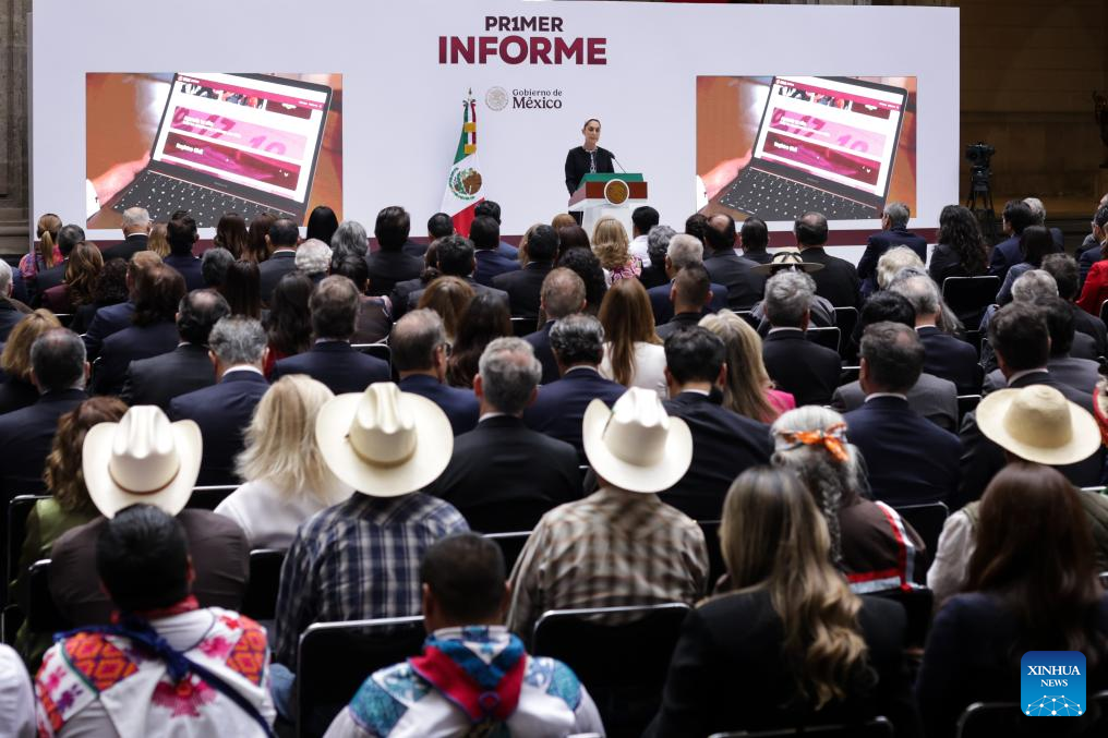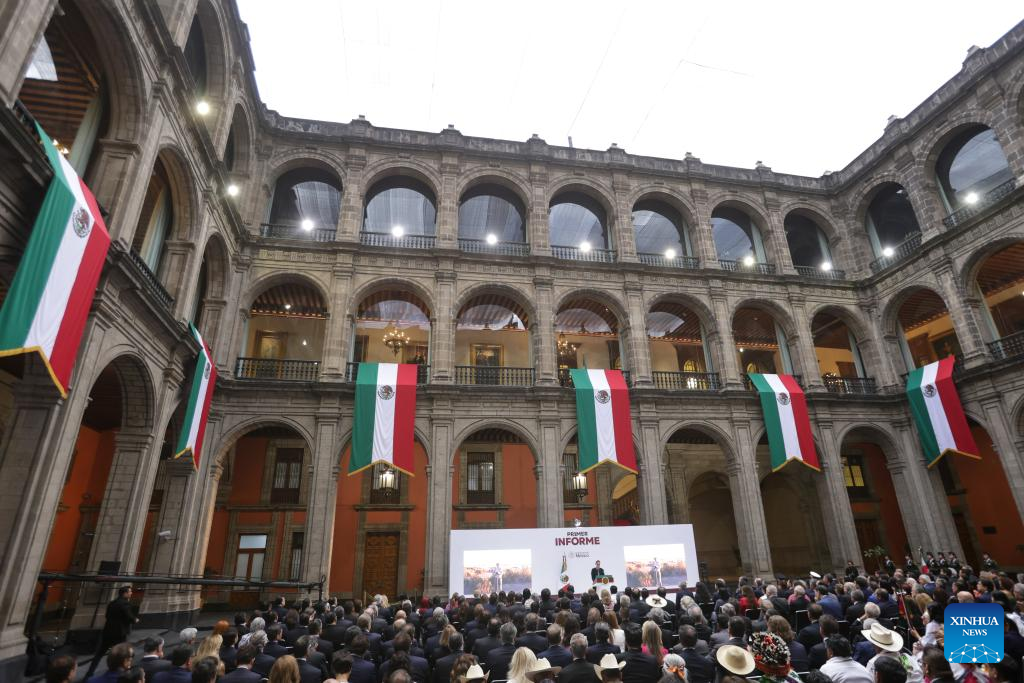 CIUDAD DE MEXICO, 1 septiembre, 2025 (Xinhua) -- La presidenta mexicana, Claudia Sheinbaum (c-atrás), participa durante su Primer Informe de Gobierno, en la Ciudad de México, capital de México, el 1 de septiembre de 2025. (Xinhua/Francisco Cañedo)