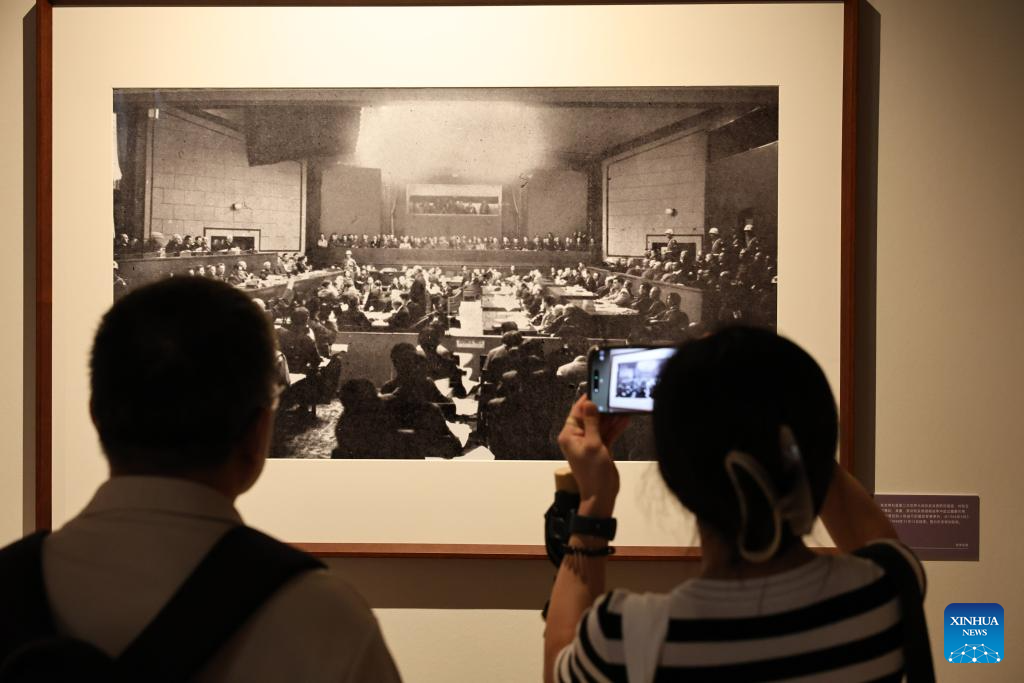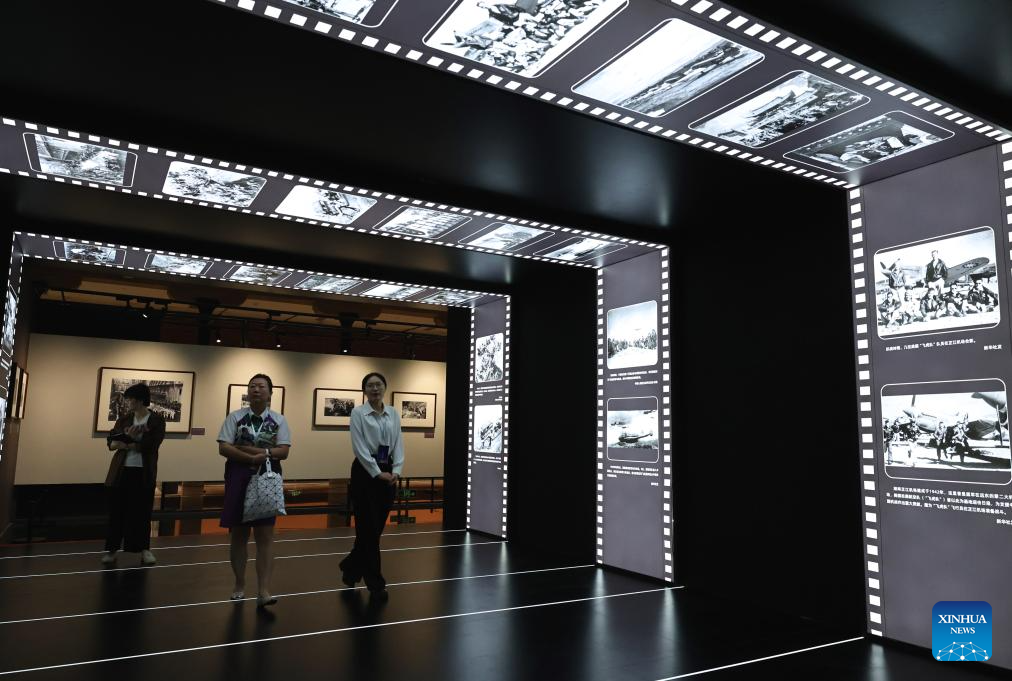 SHANGHAI, 1 septiembre, 2025 (Xinhua) -- Personas visitan una exposición de arte que destaca la Guerra de Resistencia del Pueblo Chino contra la Agresión Japonesa, en Shanghai, en el este de China, el 1 de septiembre de 2025. Una exposición con más de 140 fotografías sobre la Guerra de Resistencia del Pueblo Chino contra la Agresión Japonesa comenzó en Shanghai el lunes. Organizada por la Agencia de Noticias Xinhua, la exposición es un evento satelital a la muestra principal abierta en Beijing el 26 de agosto. (Xinhua/Fang Zhe)
