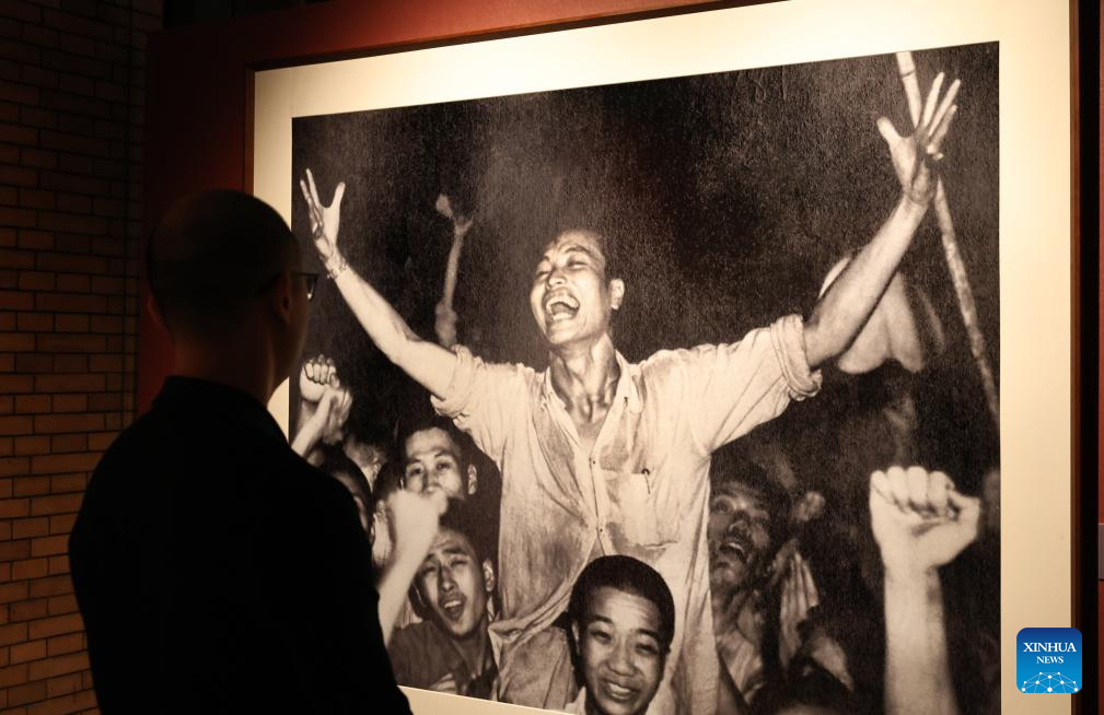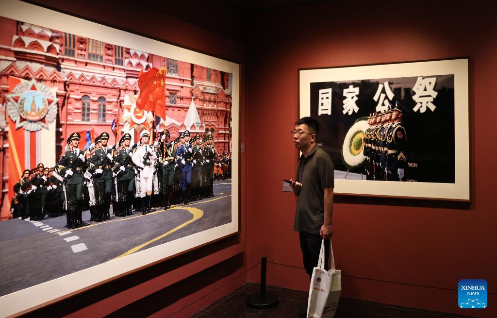 SHANGHAI, 1 septiembre, 2025 (Xinhua) -- Un hombre visita una exposición de arte que destaca la Guerra de Resistencia del Pueblo Chino contra la Agresión Japonesa, en Shanghai, en el este de China, el 1 de septiembre de 2025. Una exposición con más de 140 fotografías sobre la Guerra de Resistencia del Pueblo Chino contra la Agresión Japonesa comenzó en Shanghai el lunes. Organizada por la Agencia de Noticias Xinhua, la exposición es un evento satelital a la muestra principal abierta en Beijing el 26 de agosto. (Xinhua/Fang Zhe)