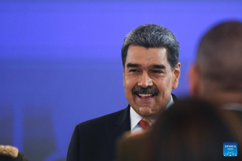 CARACAS, 1 septiembre, 2025 (Xinhua) -- El presidente venezolano, Nicolás Maduro, sonríe después de una conferencia de prensa internacional, en Caracas, Venezuela, el 1 de septiembre de 2025. Venezuela enfrenta "la más grande amenaza" que se haya visto en el continente en los últimos 100 años, afirmó el lunes Maduro, al señalar que ocho barcos militares con 1.200 misiles y un submarino nuclear "apuntan" al país sudamericano. (Xinhua/Marcos Salgado)