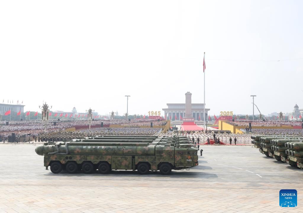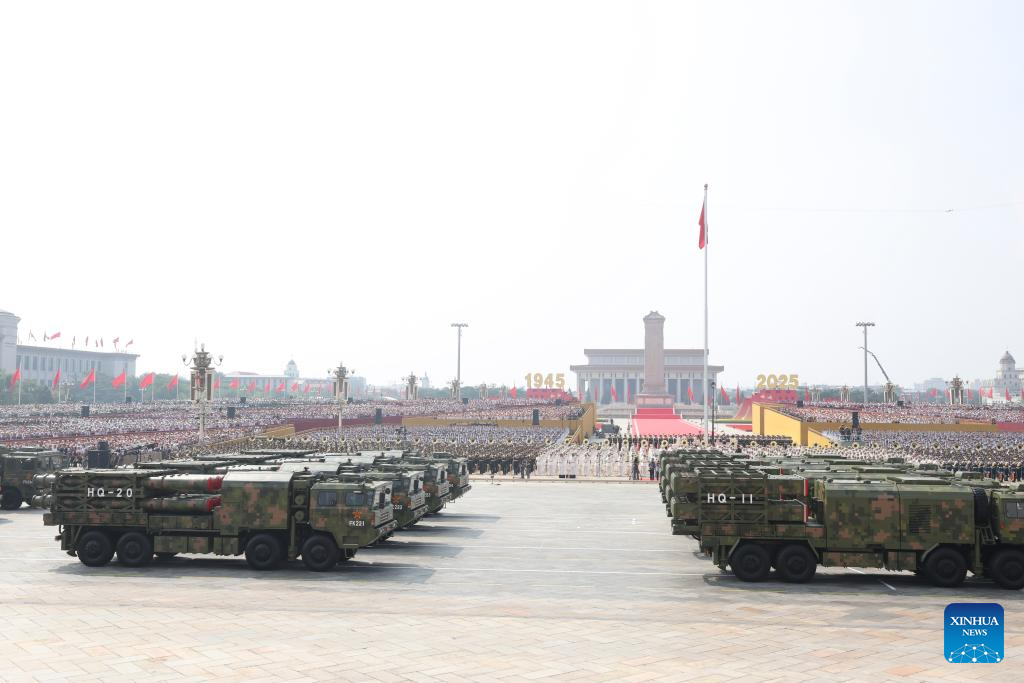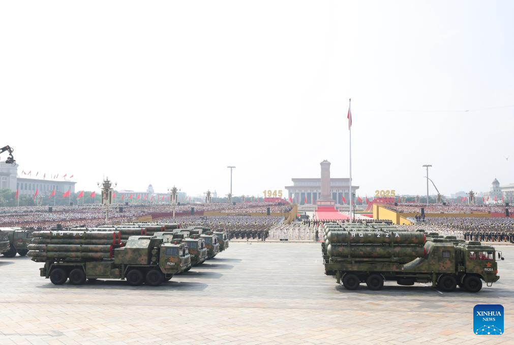 BEIJING, 3 sep (Xinhua) -- Una serie de armas de defensa aérea de China, incluyendo los HongQi-20, HongQi-19 y HongQi-29, hicieron su aparición hoy miércoles en el desfile militar del Día de la Victoria de China.