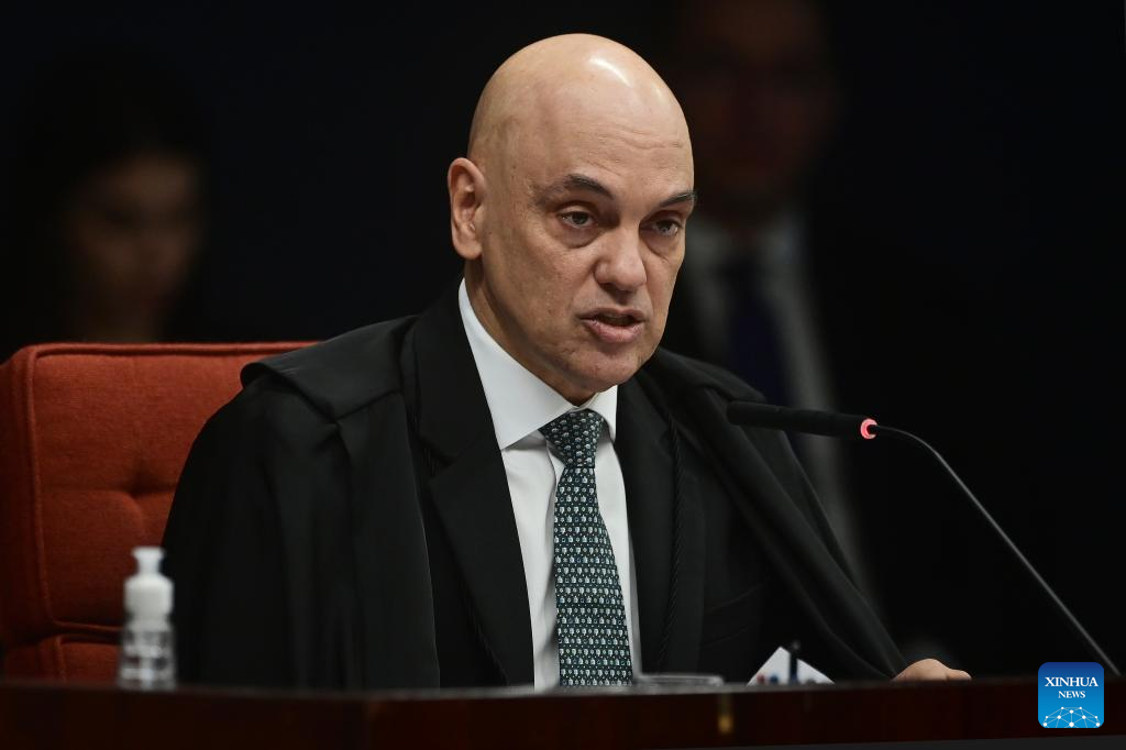 BRASILIA, 2 septiembre, 2025 (Xinhua) -- El juez del Supremo Tribunal Federal de Brasil (STF) Alexandre de Moraes habla durante el juicio al expresidente brasileño Jair Bolsonaro (2019-2022) y a otros siete acusados de participar en la tentativa de golpe de Estado para revertir el resultado de las elecciones de 2022, en Brasilia, Brasil, el 2 de septiembre de 2025. El presidente de la Primera Sala del STF de Brasil, Cristiano Zanin, abrió el martes en la ciudad de Brasilia el juicio al expresidente Jair Bolsonaro y a otros siete acusados de participar en la tentativa de golpe de Estado para revertir el resultado de las elecciones de 2022. (Xinhua/Lucio Tavora)