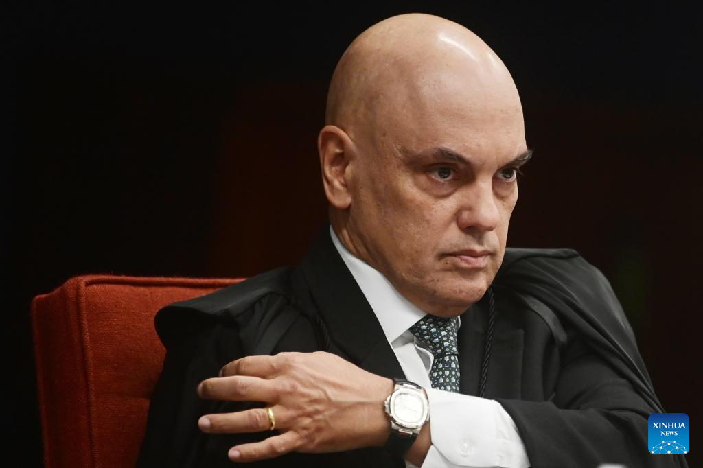 BRASILIA, 2 septiembre, 2025 (Xinhua) -- El juez del Supremo Tribunal Federal de Brasil (STF) Alexandre de Moraes asiste al juicio al expresidente brasileño Jair Bolsonaro (2019-2022) y a otros siete acusados de participar en la tentativa de golpe de Estado para revertir el resultado de las elecciones de 2022, en Brasilia, Brasil, el 2 de septiembre de 2025. El presidente de la Primera Sala del STF de Brasil, Cristiano Zanin, abrió el martes en la ciudad de Brasilia el juicio al expresidente Jair Bolsonaro y a otros siete acusados de participar en la tentativa de golpe de Estado para revertir el resultado de las elecciones de 2022. (Xinhua/Lucio Tavora)