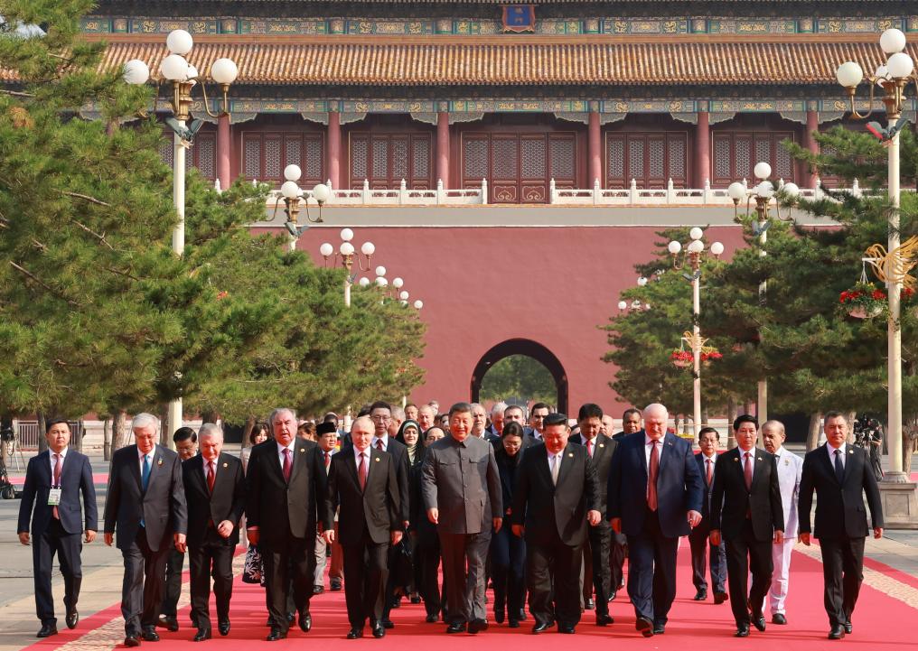 BEIJING, 3 sep (Xinhua) -- El presidente chino, Xi Jinping, y su esposa, Peng Liyuan, dieron la bienvenida a los jefes de las delegaciones extranjeras y sus cónyuges, antes de las conmemoraciones del Día de la Victoria de China que se celebrará hoy miércoles por la mañana en la Plaza Tian'anmen.