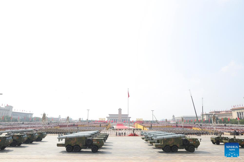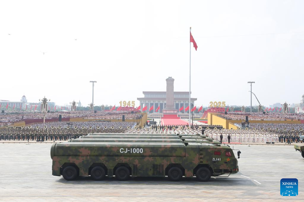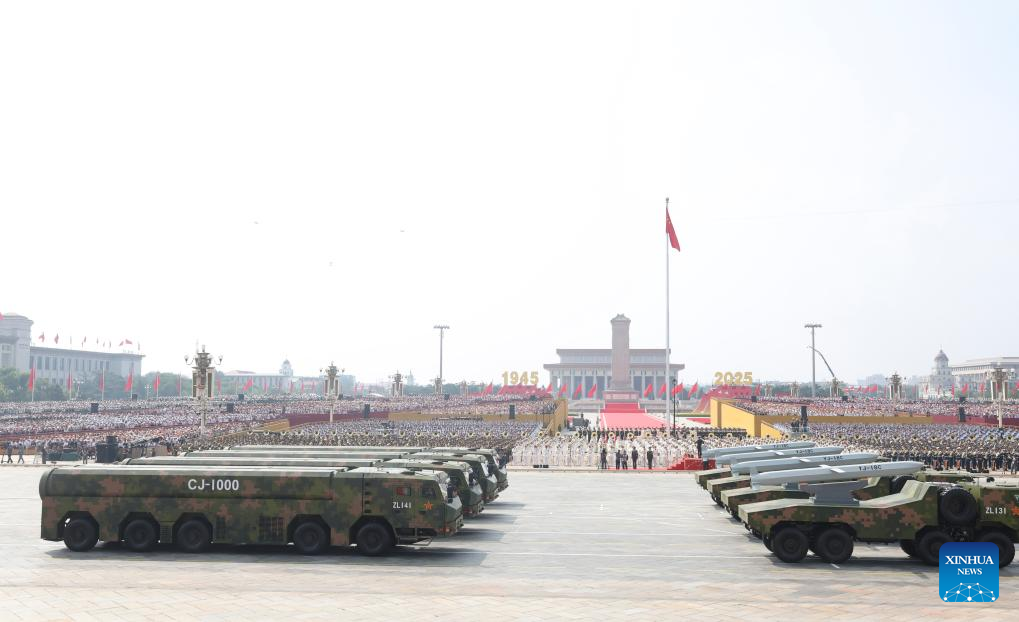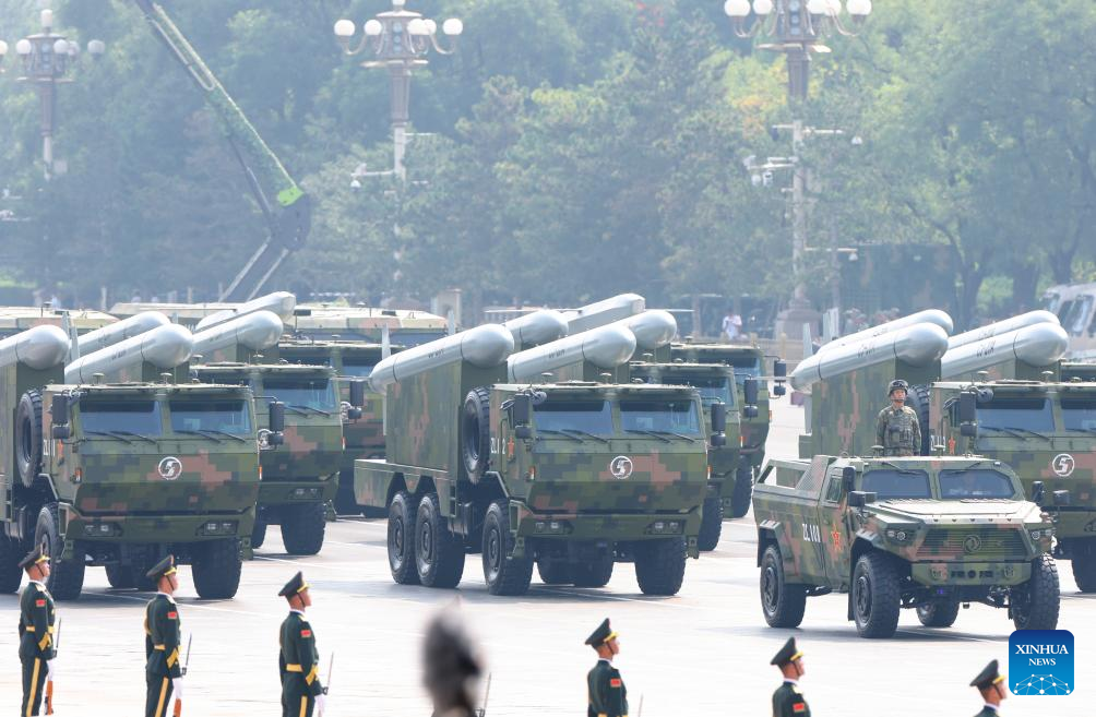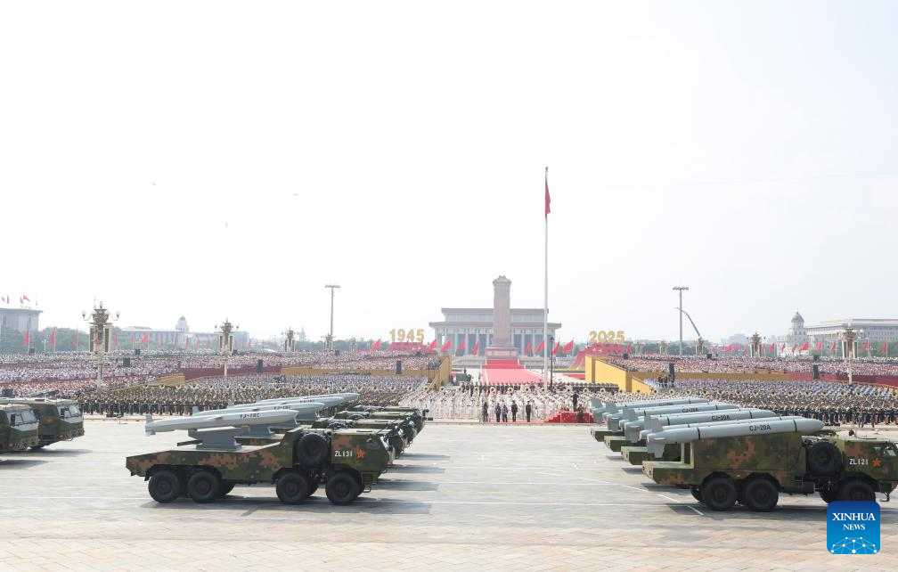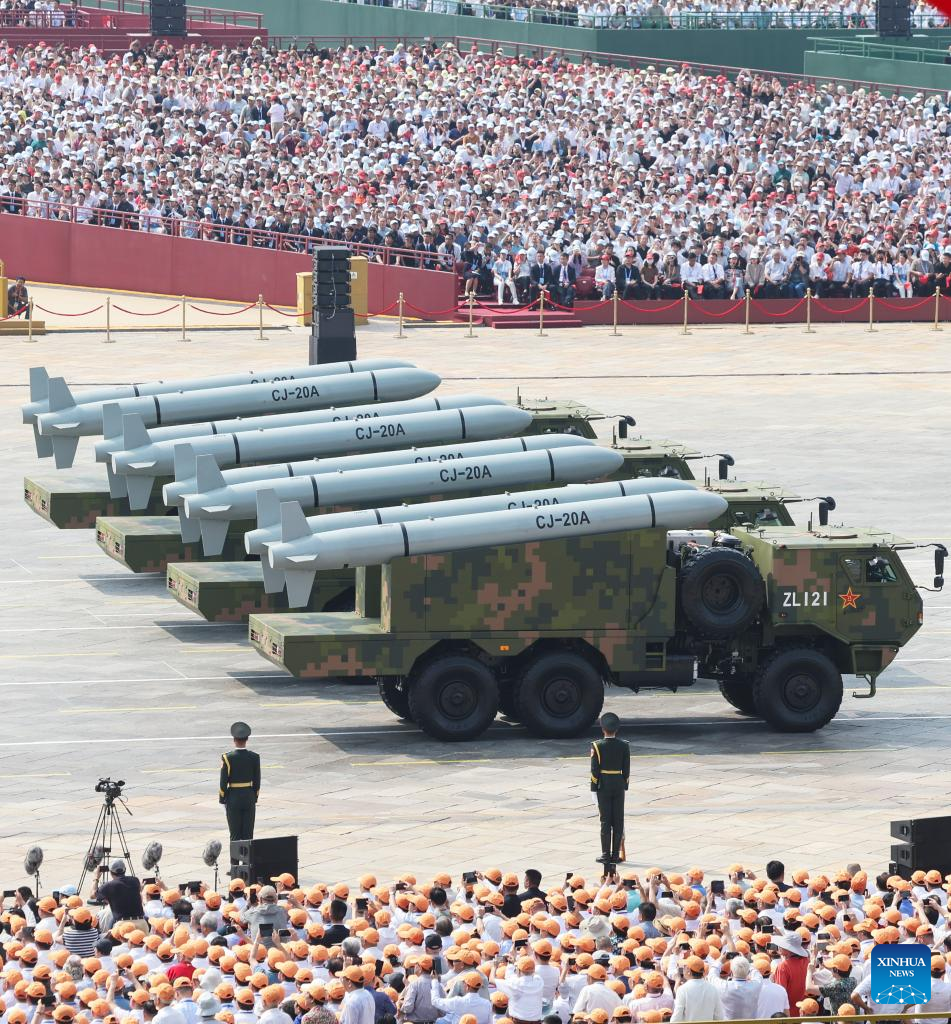 BEIJING, 3 sep (Xinhua) -- China exhibió hoy miércoles los misiles de crucero ChangJian-20A, YingJi-18C y ChangJian-1000 en el desfile militar del Día de la Victoria para demostrar sus capacidades de ataque preciso de largo alcance y disuasión en múltiples dominios.