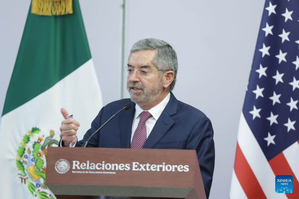 CIUDAD DE MEXICO, 3 septiembre, 2025 (Xinhua) -- El canciller mexicano, Juan Ramón de la Fuente, habla durante una conferencia de prensa conjunta con el secretario de Estado estadounidense, Marco Rubio, en la Ciudad de México, capital de México, el 3 de septiembre de 2025. México y Estados Unidos reafirmaron el miércoles su compromiso de fortalecer la cooperación en materia de seguridad, bajo los principios de reciprocidad, respeto a la soberanía, integridad territorial, responsabilidad compartida y confianza mutua, informaron ambos gobiernos en un comunicado conjunto. (Xinhua/Francisco Cañedo)
