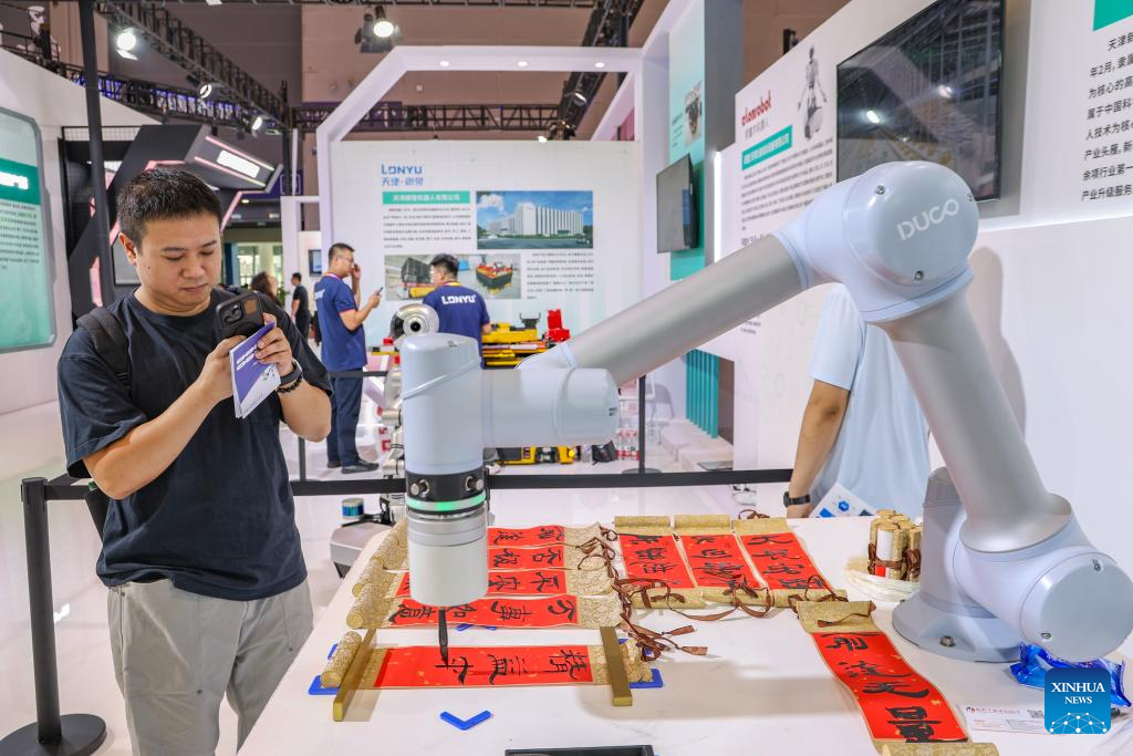CHONGQING, 5 septiembre, 2025 (Xinhua) -- Un robot demuestra habilidades de caligrafía durante la Exposición Mundial de la Industria Inteligente 2025, en Chongqing, en el suroeste de China, el 5 de septiembre de 2025. La Exposición Mundial de la Industria Inteligente 2025 comenzó el viernes en la municipalidad de Chongqing, reuniendo a más de 600 empresas nacionales e internacionales para mostrar innovaciones en varios sectores, incluida la conducción autónoma, los hogares inteligentes y la economía de baja altitud. (Xinhua/Huang Wei)