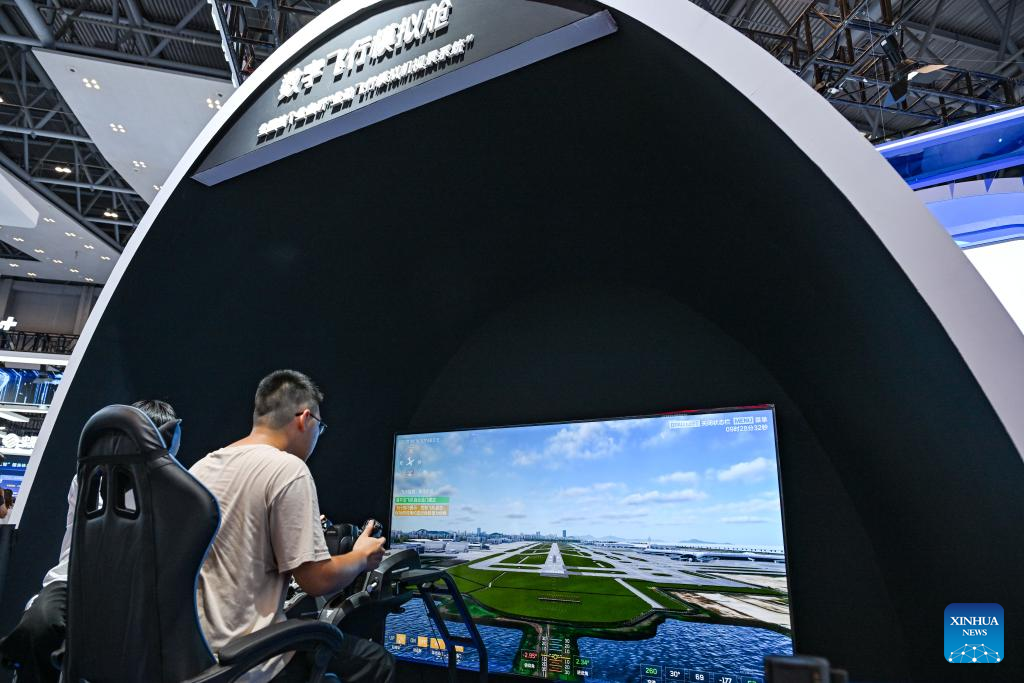 CHONGQING, 5 septiembre, 2025 (Xinhua) -- Un visitante prueba un simulador de vuelo durante la Exposición Mundial de la Industria Inteligente 2025, en Chongqing, en el suroeste de China, el 5 de septiembre de 2025. La Exposición Mundial de la Industria Inteligente 2025 comenzó el viernes en la municipalidad de Chongqing, reuniendo a más de 600 empresas nacionales e internacionales para mostrar innovaciones en varios sectores, incluida la conducción autónoma, los hogares inteligentes y la economía de baja altitud. (Xinhua/Wang Quanchao)