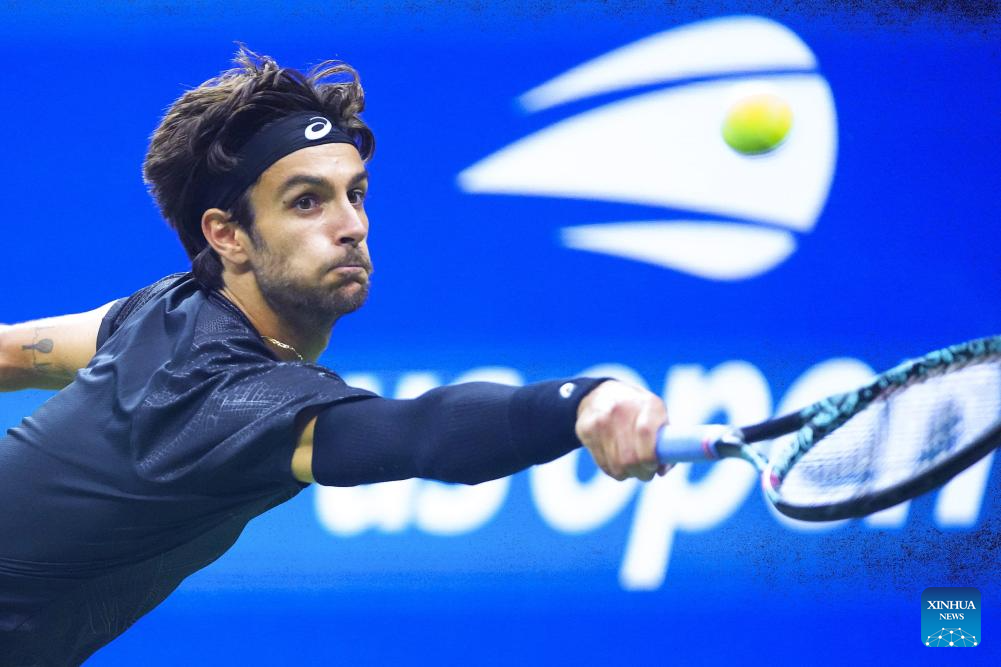 NUEVA YORK, 4 septiembre, 2025 (Xinhua) -- Imagen del 3 de septiembre de 2025 de Lorenzo Musetti devolviendo la pelota durante el partido de cuartos de final de individuales masculinos entre Jannik Sinner, de Italia, y Lorenzo Musetti, de Italia, en el campeonato de tenis US Open 2025, en Nueva York, Estados Unidos. (Xinhua/Wu Xiaoling)