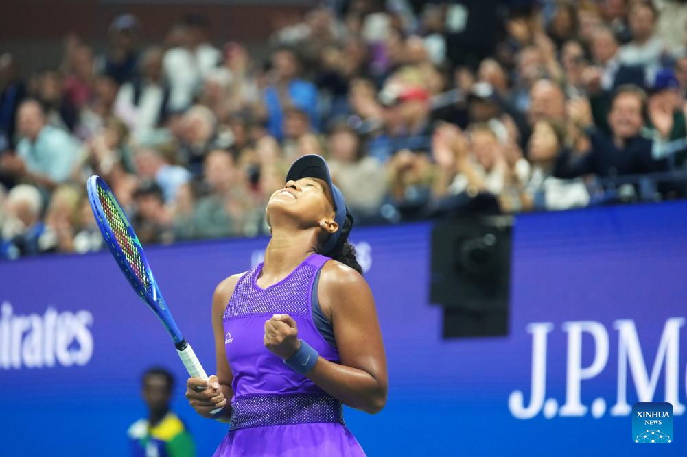 NUEVA YORK, 4 septiembre, 2025 (Xinhua) -- Imagen del 3 de septiembre de 2025 de Osaka Naomi, festejando después de ganar el partido de cuartos de final de individuales femeninos entre Osaka Naomi, de Japón, y Karolina Muchova, de República Checa, en el campeonato de tenis US Open 2025, en Nueva York, Estados Unidos. (Xinhua/Wu Xiaoling)