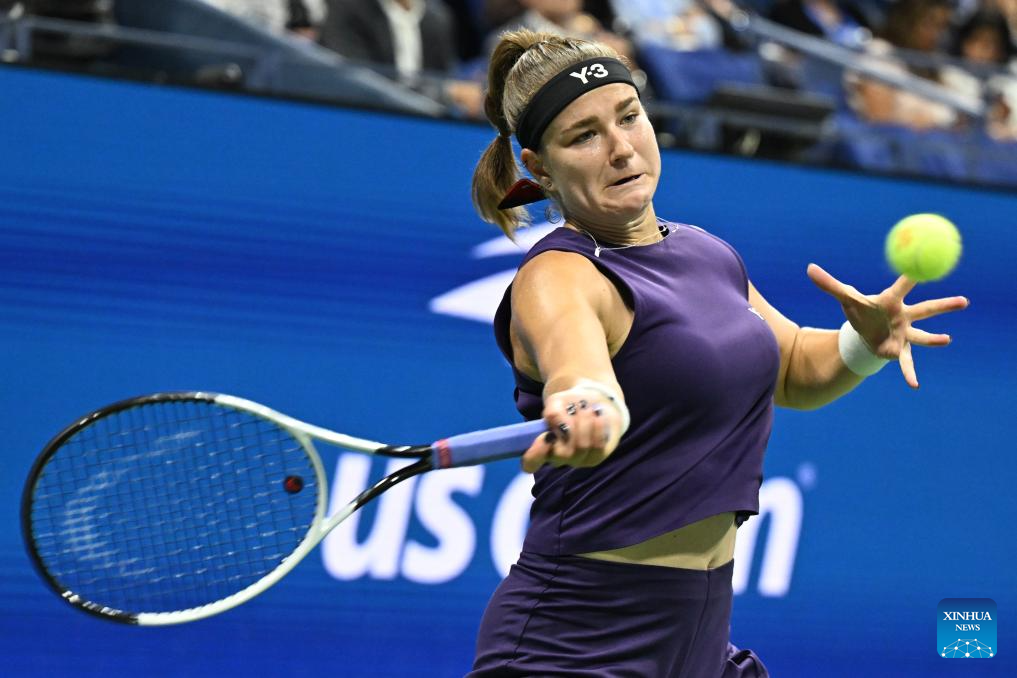 NUEVA YORK, 4 septiembre, 2025 (Xinhua) -- Imagen del 3 de septiembre de 2025 de Karolina Muchova, devolviendo la pelota durante el partido de cuartos de final de individuales femeninos entre Osaka Naomi, de Japón, y Karolina Muchova, de República Checa, en el campeonato de tenis US Open 2025, en Nueva York, Estados Unidos. (Xinhua/Li Rui)