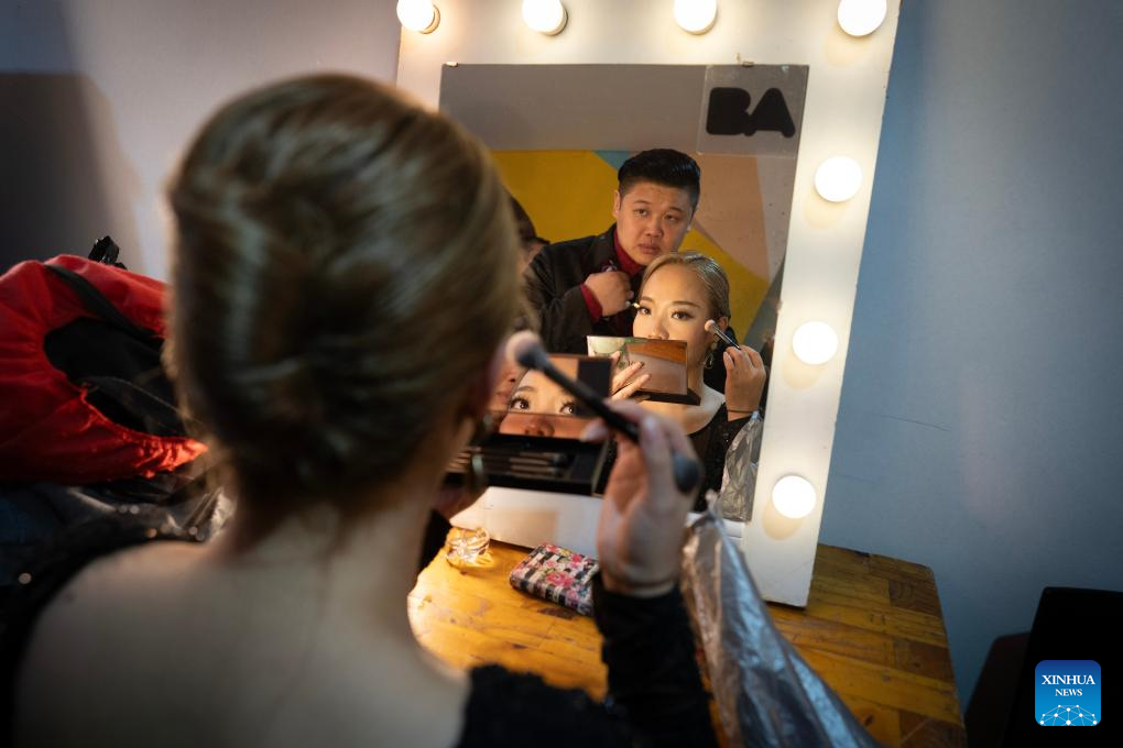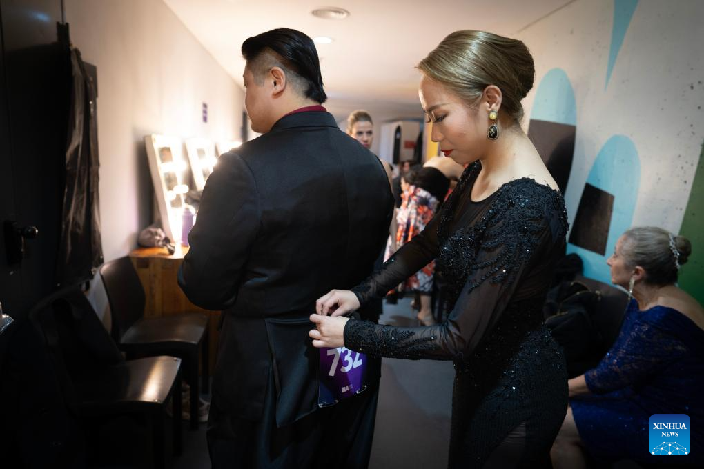 BUENOS AIRES, 5 septiembre, 2025 (Xinhua) -- Imagen del 27 de agosto de 2025 de Su Junqiang (i), y Guo Xingzhu, preparándose previo a los cuartos de final de la categoría Tango de Pista, en el Campeonato Mundial de Tango, en Buenos Aires, Argentina. En Buenos Aires, los bailarines de tango chinos Su Junqiang y Guo Xingzhu llevaron su pasión y dedicación al escenario mundial. La pareja, que ganó la competición regional de China en Shanghai a principios de este año, representó a China en el Campeonato Mundial de Tango 2025, avanzando a los cuartos de final y a las semifinales en la categoría "Tango de Pista" y realizando una presentación en la Milonga de Campeones. (Xinhua/Martín Zabala)