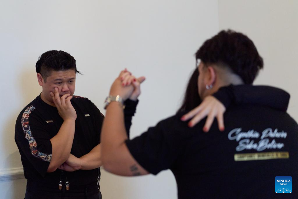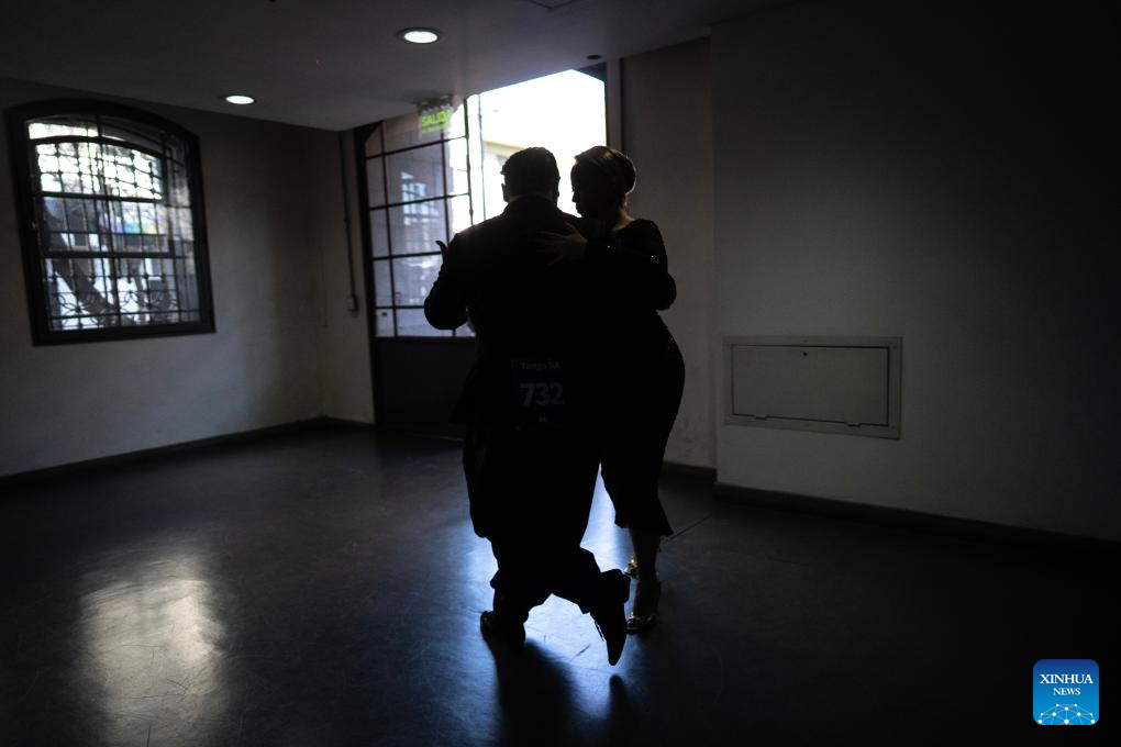 BUENOS AIRES, 5 septiembre, 2025 (Xinhua) -- Imagen del 27 de agosto de 2025 de Su Junqiang (i), y Guo Xingzhu, calentando previo a los cuartos de final de la categoría Tango de Pista, en el Campeonato Mundial de Tango, en Buenos Aires, Argentina. En Buenos Aires, los bailarines de tango chinos Su Junqiang y Guo Xingzhu llevaron su pasión y dedicación al escenario mundial. La pareja, que ganó la competición regional de China en Shanghai a principios de este año, representó a China en el Campeonato Mundial de Tango 2025, avanzando a los cuartos de final y a las semifinales en la categoría "Tango de Pista" y realizando una presentación en la Milonga de Campeones. (Xinhua/Martín Zabala)