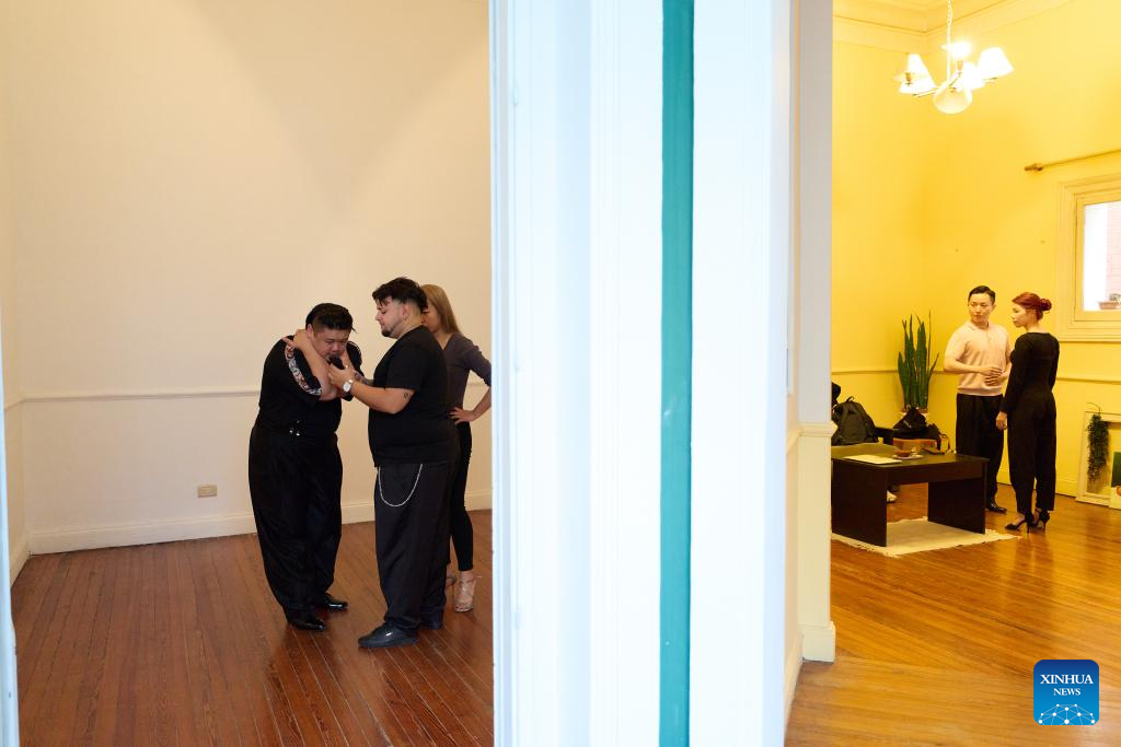 BUENOS AIRES, 5 septiembre, 2025 (Xinhua) -- Imagen del 28 de agosto de 2025 de bailarines de República de Corea observando a Su Junqiang (i), y Guo Xingzhu (3-i), mientras practican en un estudio de baile, en Buenos Aires, Argentina. En Buenos Aires, los bailarines de tango chinos Su Junqiang y Guo Xingzhu llevaron su pasión y dedicación al escenario mundial. La pareja, que ganó la competición regional de China en Shanghai a principios de este año, representó a China en el Campeonato Mundial de Tango 2025, avanzando a los cuartos de final y a las semifinales en la categoría "Tango de Pista" y realizando una presentación en la Milonga de Campeones. (Xinhua/Meng Dingbo)