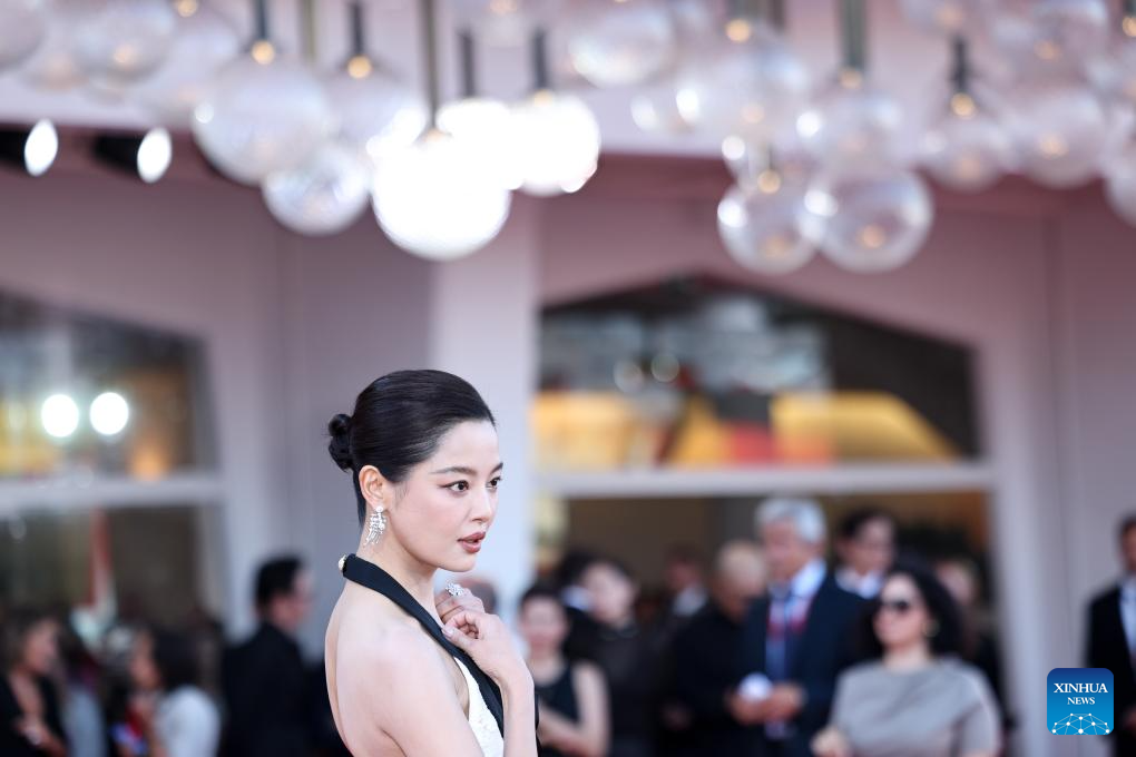 VENECIA, 5 septiembre, 2025 (Xinhua) -- Xin Zhilei, quien protagoniza la película "The Sun Rises On Us All", posa en la alfombra roja del estreno durante el 82º Festival de Cine de Venecia, en Venecia, Italia, el 5 de septiembre de 2025. (Xinhua/Li Jing)