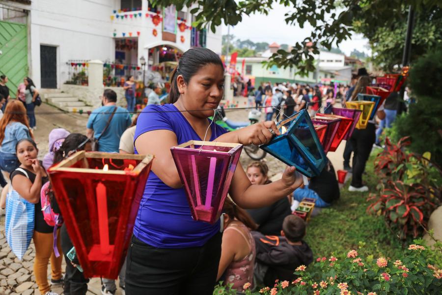 AHUACHAPÁN, El Salvador, 8 sep (Xinhua) -- La noche cayó sobre la ciudad de Ahuachapán en el occidente de El Salvador y con ella una marea de luces coloridas transformó el domingo sus calles en un escenario vibrante con miles de farolitos de madera y papel de tonos brillantes que cubrieron balcones, aceras y plazas, al encender una de las tradiciones culturales más queridas del país.