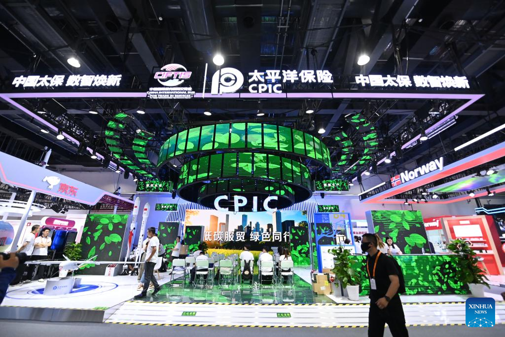 BEIJING, 9 septiembre, 2025 (Xinhua) -- Imagen del 9 de septiembre de 2025 del estand de China Pacific Insurance Company en la sede de la próxima Feria Internacional de Comercio de Servicios de China (CIFTIS, por sus siglas en inglés) 2025 en el Parque Shougang, en Beijing, capital de China. La CIFTIS 2025 está prevista que tenga lugar aquí del 10 al 14 de septiembre. (Xinhua/Xiao Xiao)
